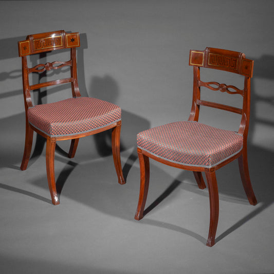 A Pair of Regency Brass Inlaid Klismos Chairs