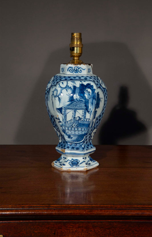 Pair of Dutch Delft Blue and White Chinoiserie Vase Lamps