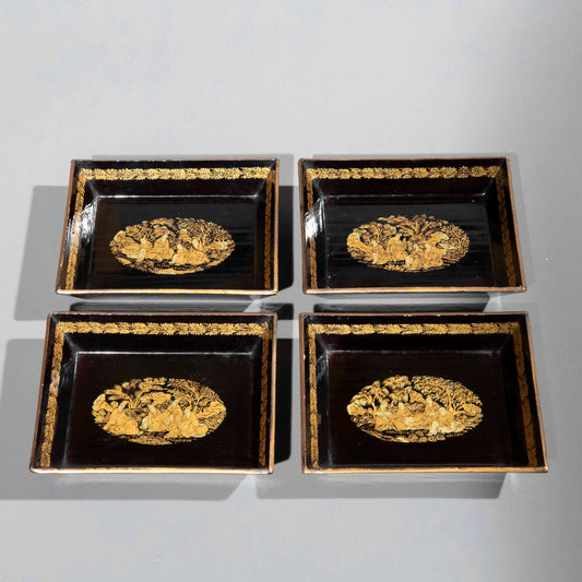 Set of Four Early 19th Century Chinoiserie Black Lacquer Trays