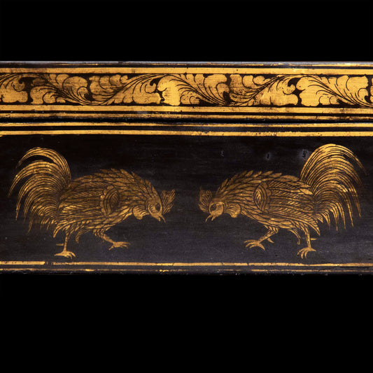 Unusual Chinese Export Lacquer Box Decorated with Cockerels