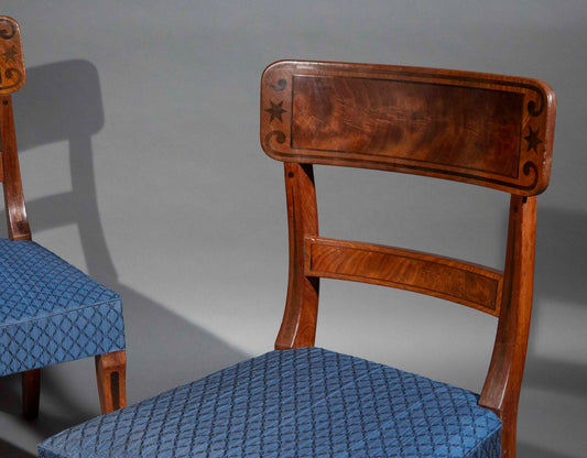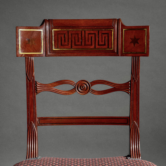 Greek Key and Brass Inlaid Klismos Chairs, Early 19th Century