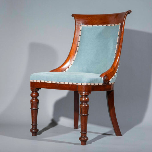 Early 19th Century Pair of Regency Klismos Hall Chairs with Armorial Backs