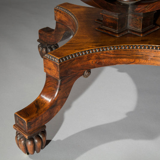 Fine Regency Rosewood, Calamander and Ebony, Brass Inlaid and Gilt Table