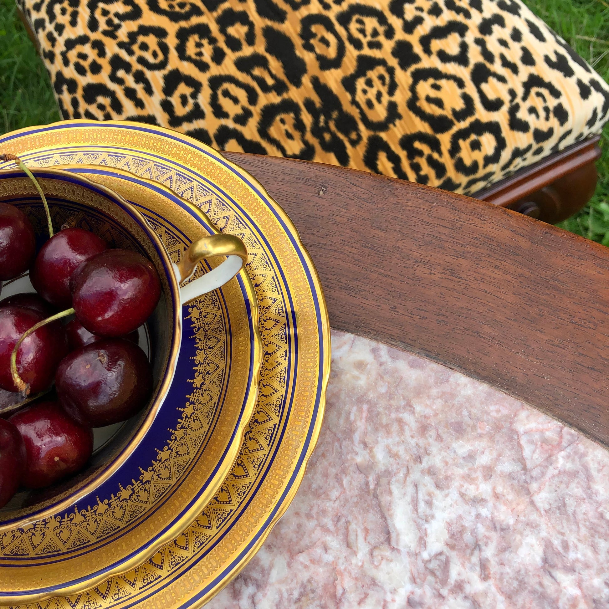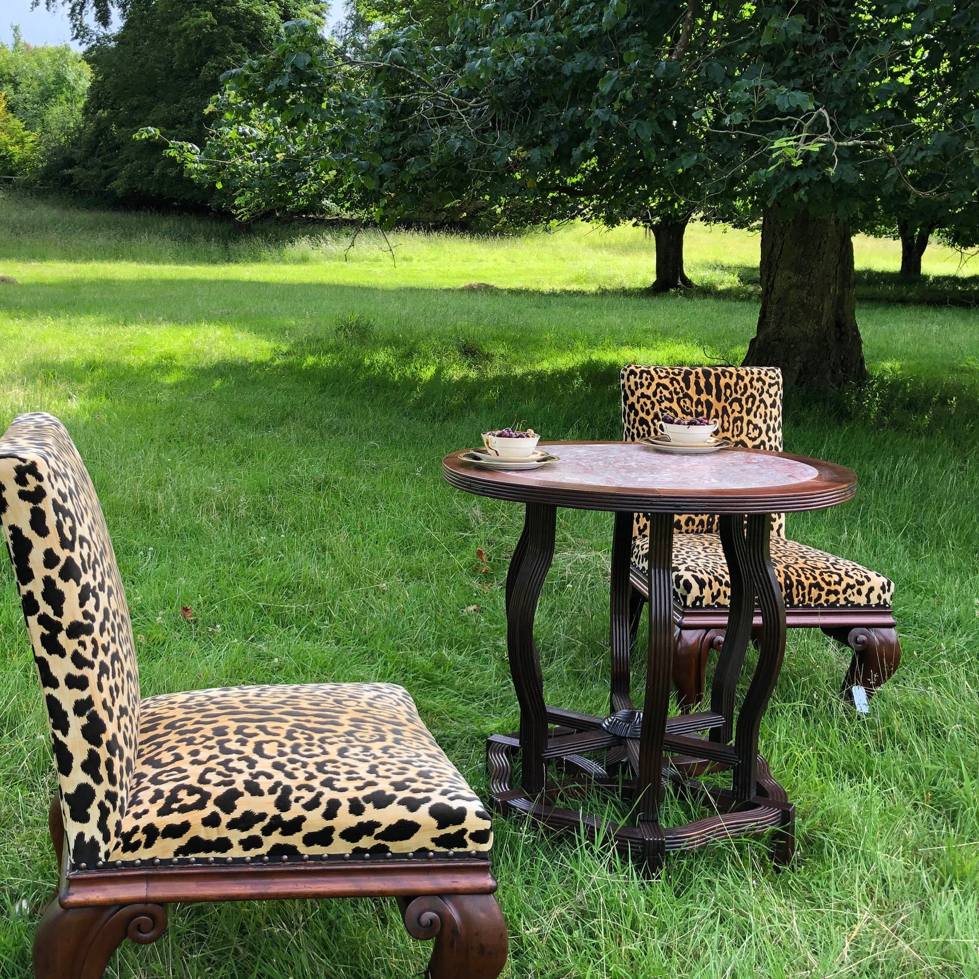 An unusual Anglo-Chinese hongmu centre table with pink marble top.