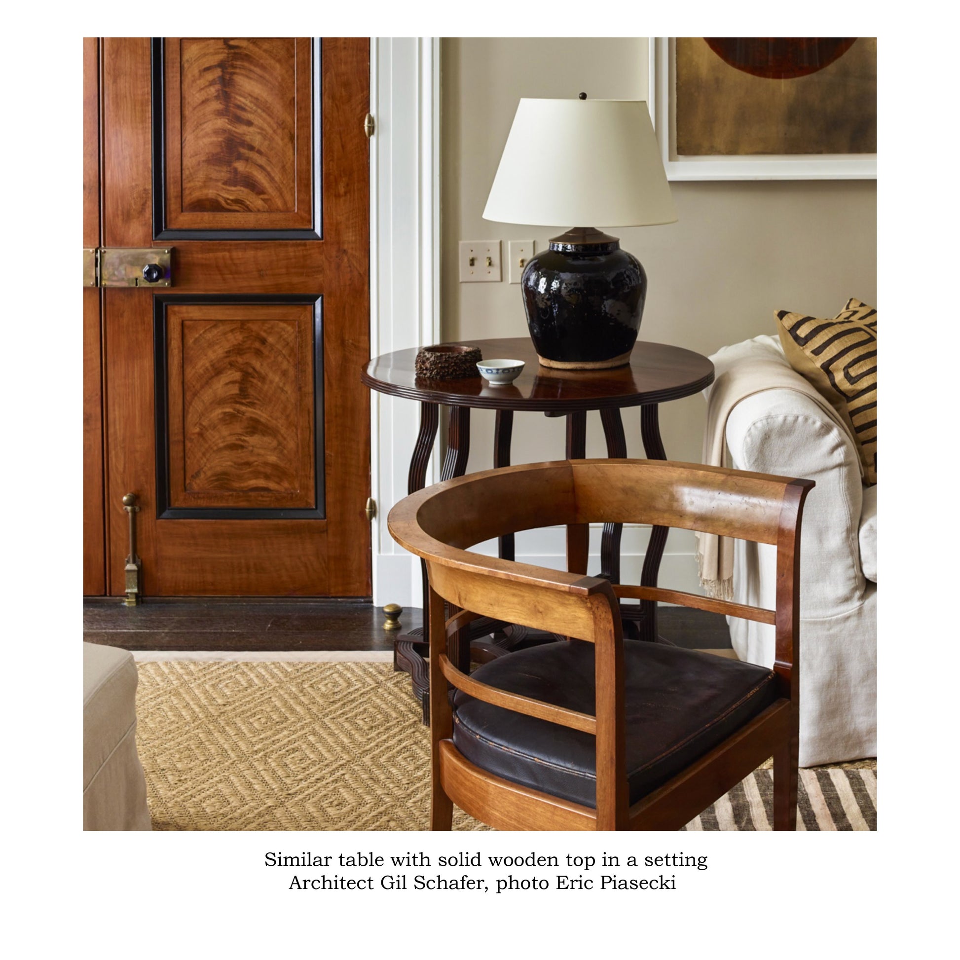 This elegant centre table has a most unusual design with reeded base and folding supports; a perfect table for contemporary and eclectic interiors.