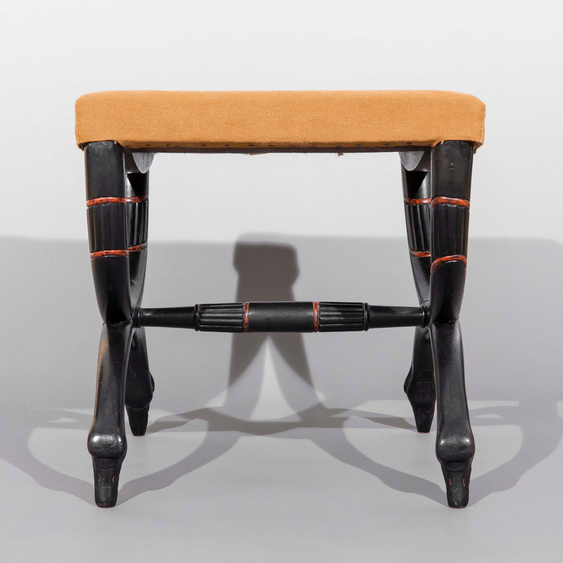 This stool is made to a design by Jean Démosthène Dugourc (1749-1825), who was undoubtedly inspired by ancient Roman bronze curule stools (the Romans, in turn, were inspired by Etruscan and/or Egyptian stools - a photo of one of such stools at The Metropolitan Museum of Art in New York City is added to this listing as an illustration of the origins of design - but that’s a much longer conversation!).