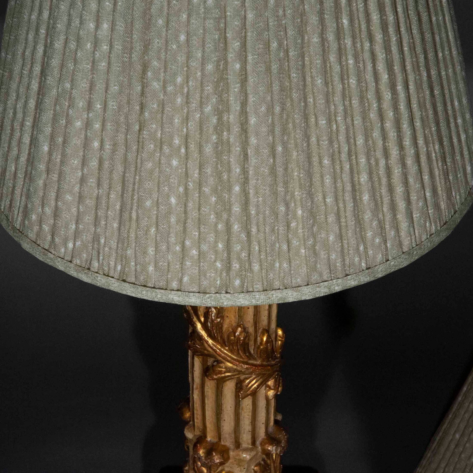 A pair of large Italian carved, painted and gilt table lamps. Possibly Florence, late 18th century.