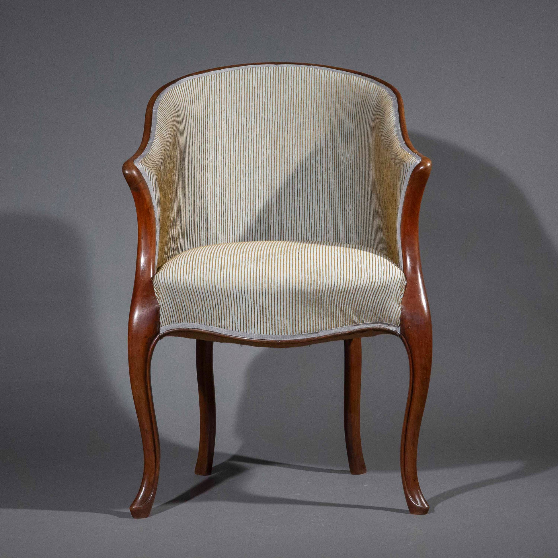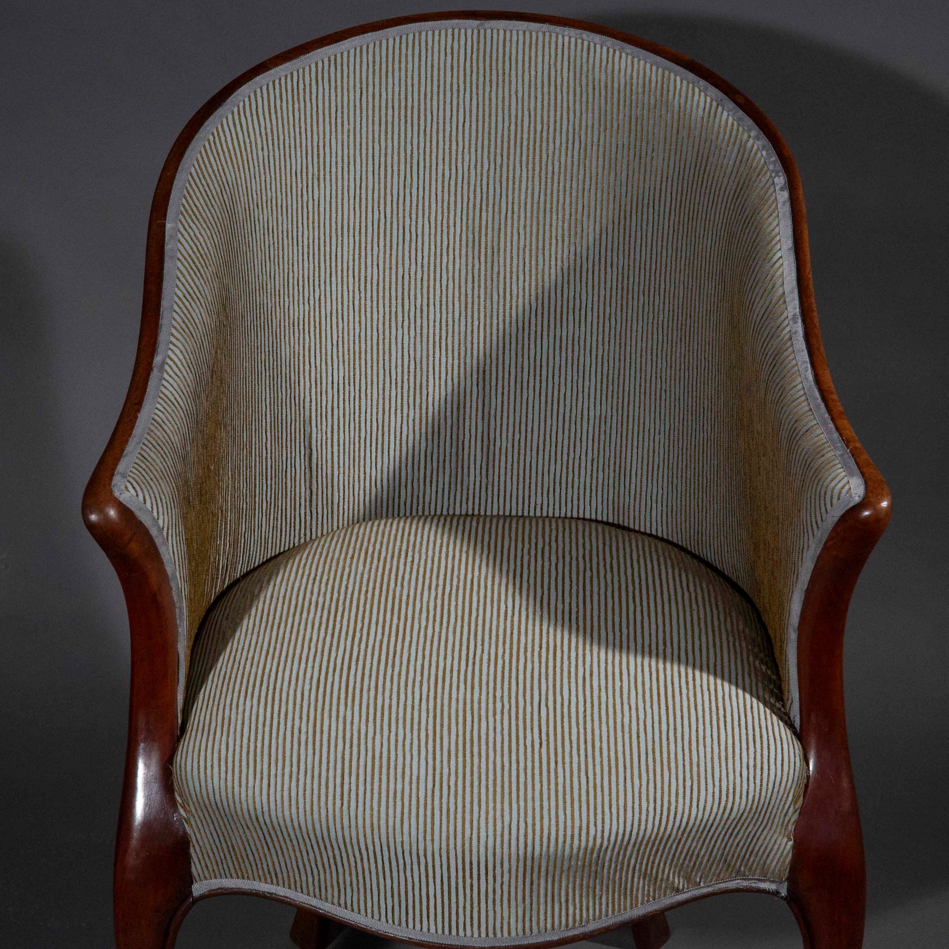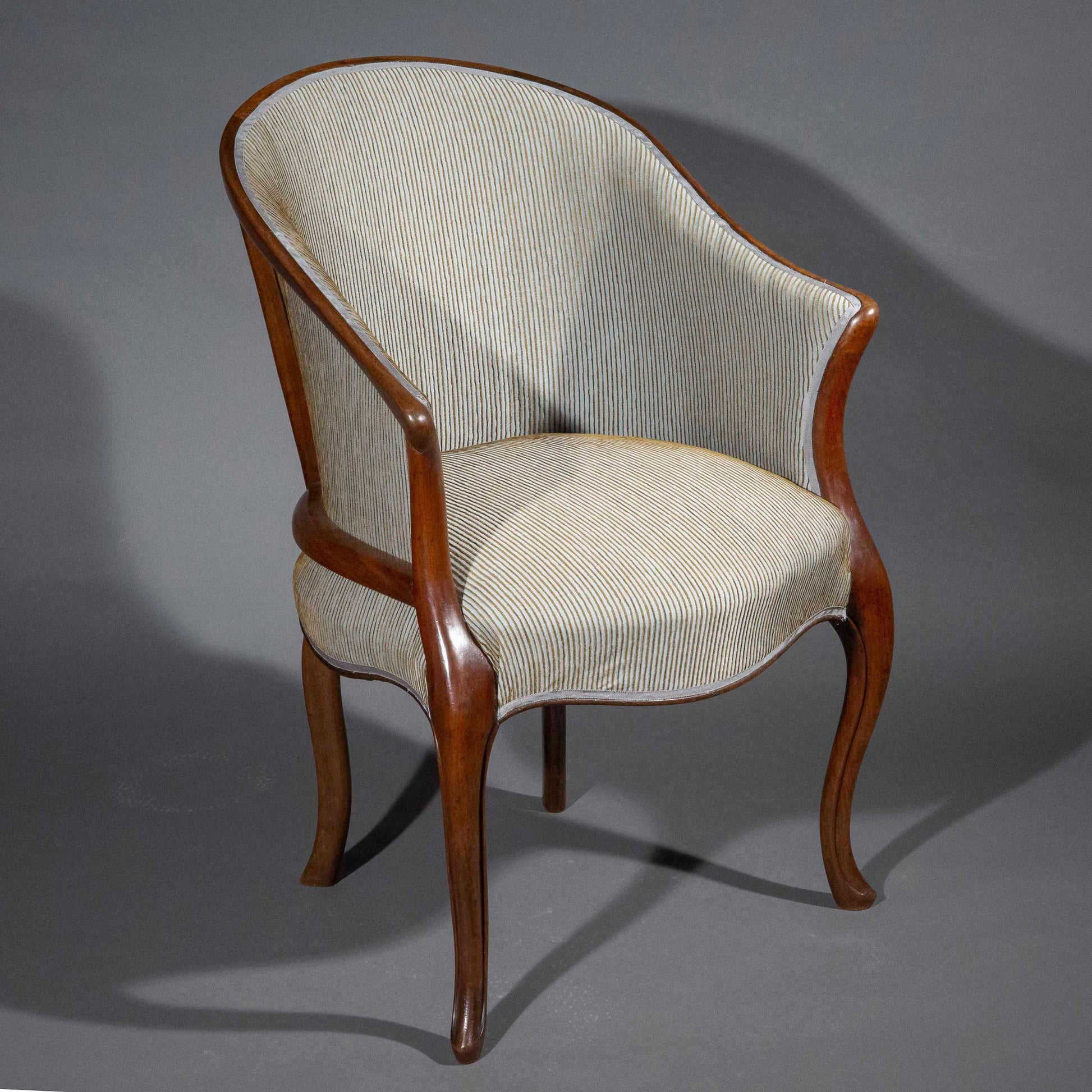 Essentially a revival of a mid-18th century model, this armchair is extremely elegant and comfortable. It is freshly reupholstered in luxurious Italian textile with matching trim; perfect for a classic interior as well as for a fresh modern look.