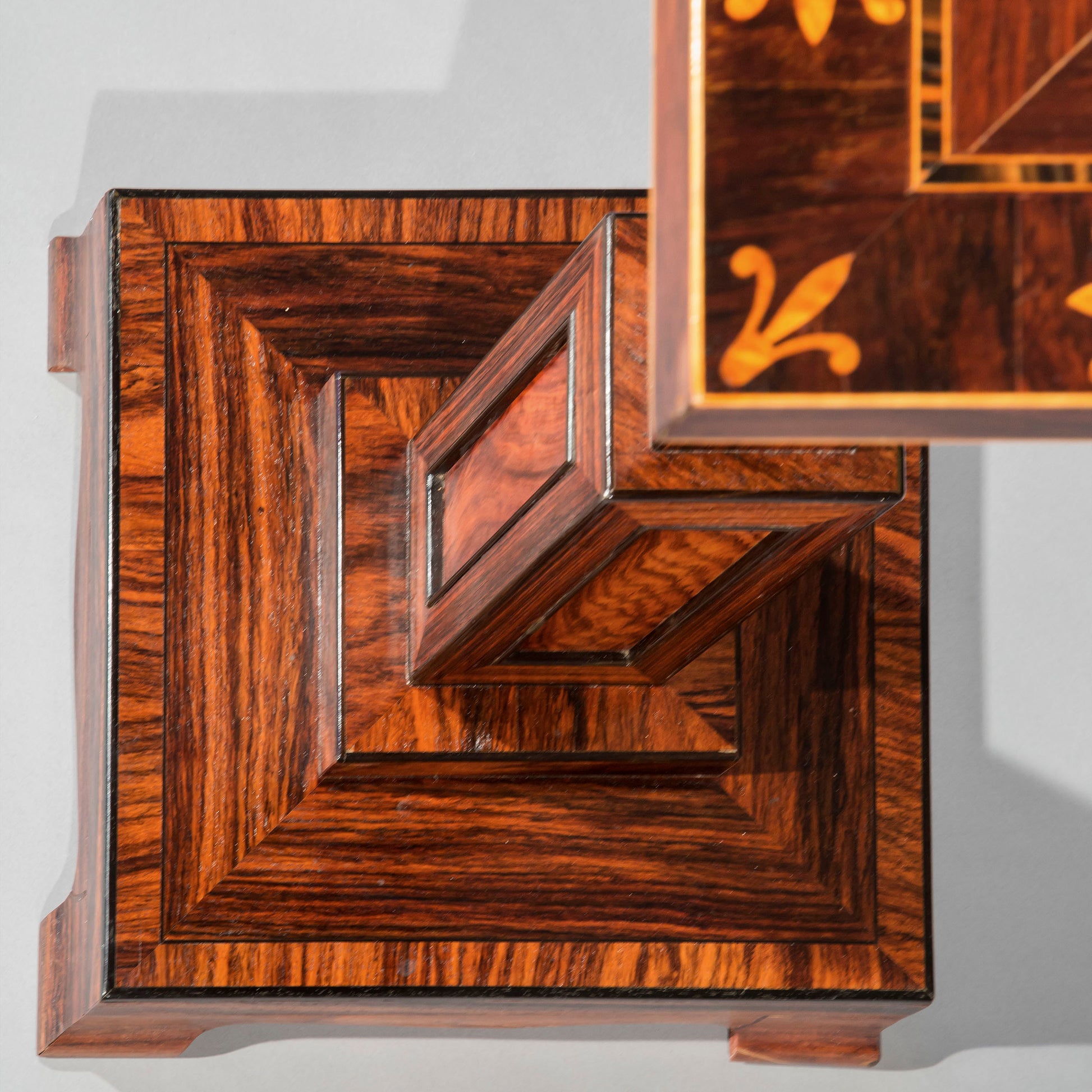 An interesting marquetry table, of geometric neoclassical design, in padouk, ebony and satinwood.