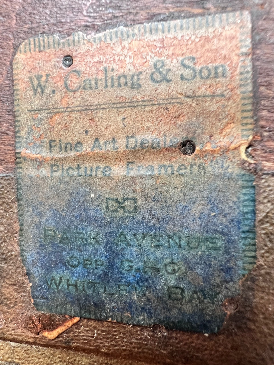 W.Carling & Son, Fine Art Dealers, Picture Framers, Park Avenue, Whitley Bay (early 20th label to reverse).