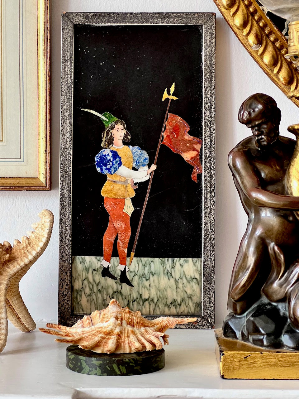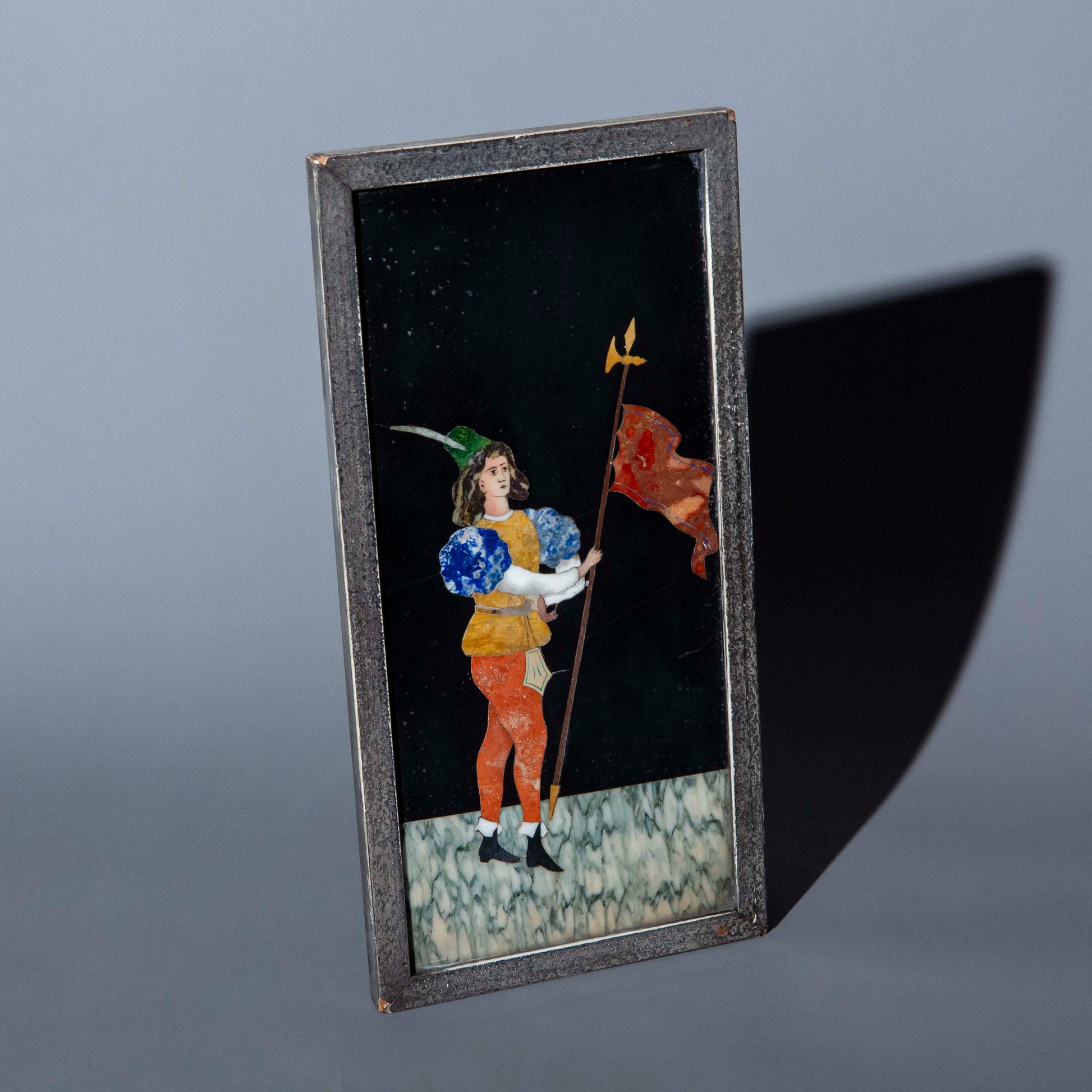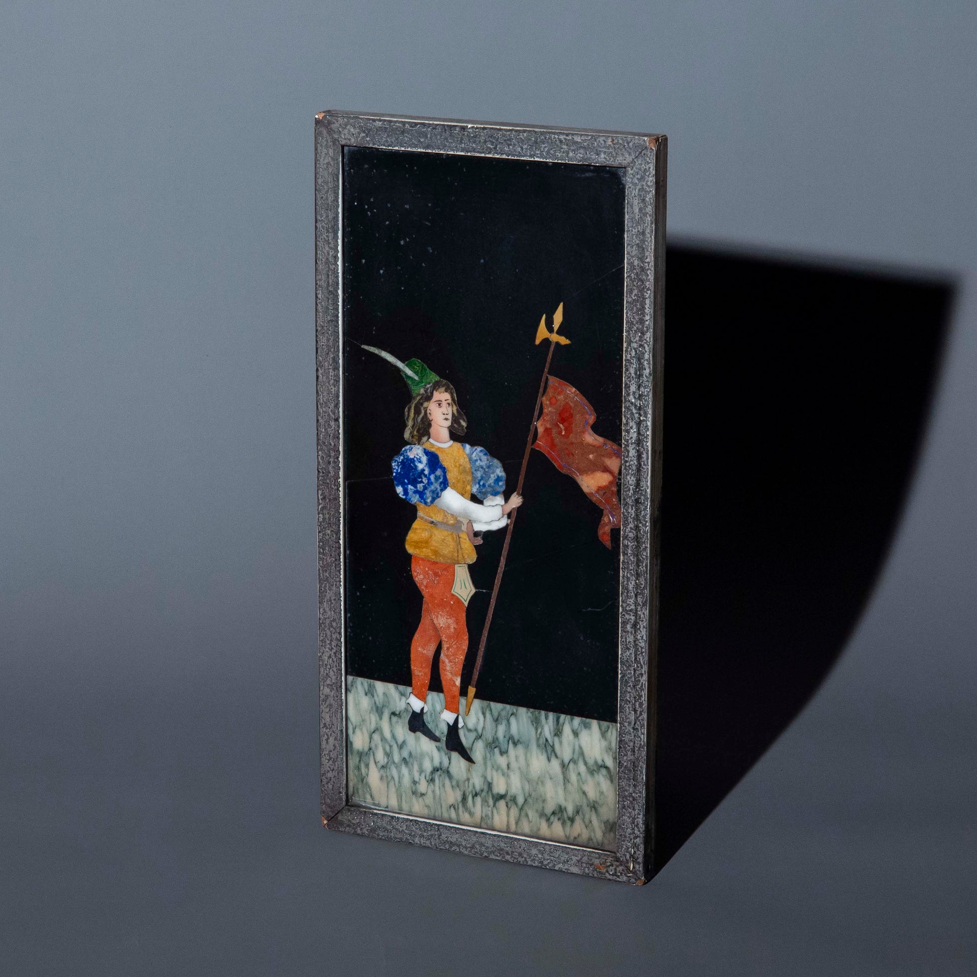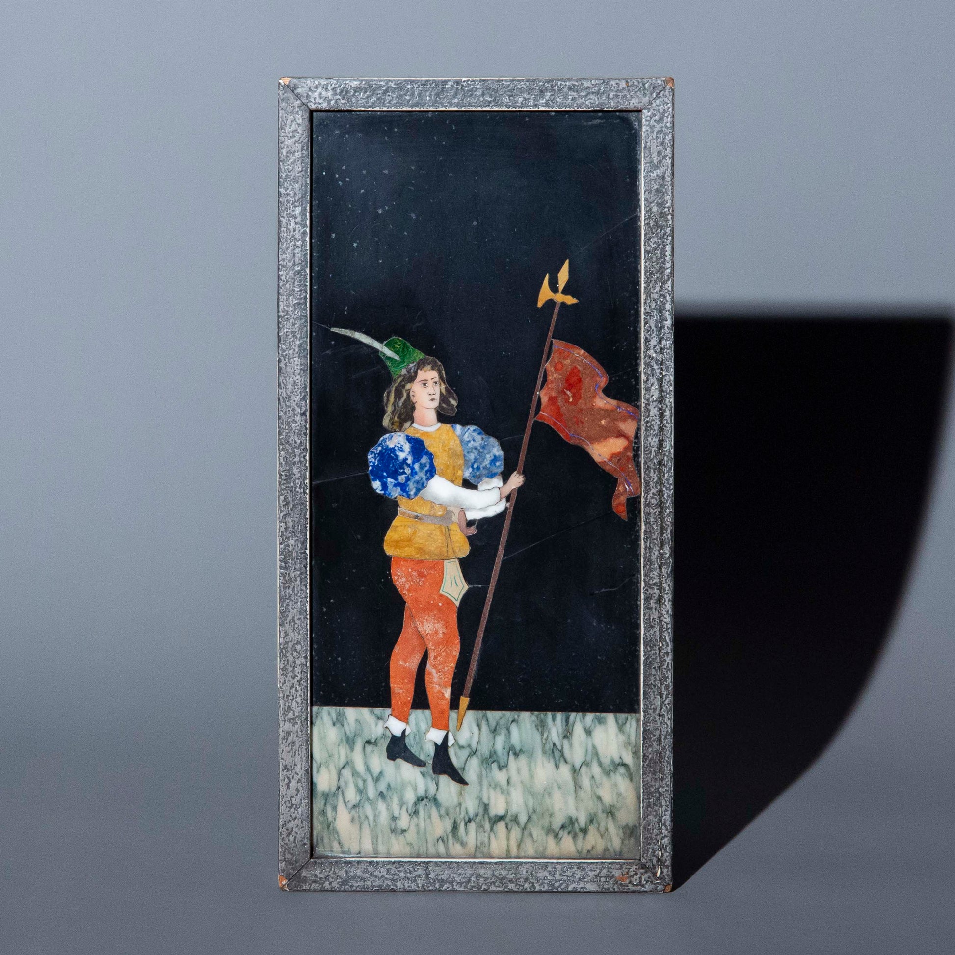 Fabulous 19th century pietra dura depicting a handsome young 'Alfiere' - a colourful standard bearer in a traditional festival such as Palio di Siena.