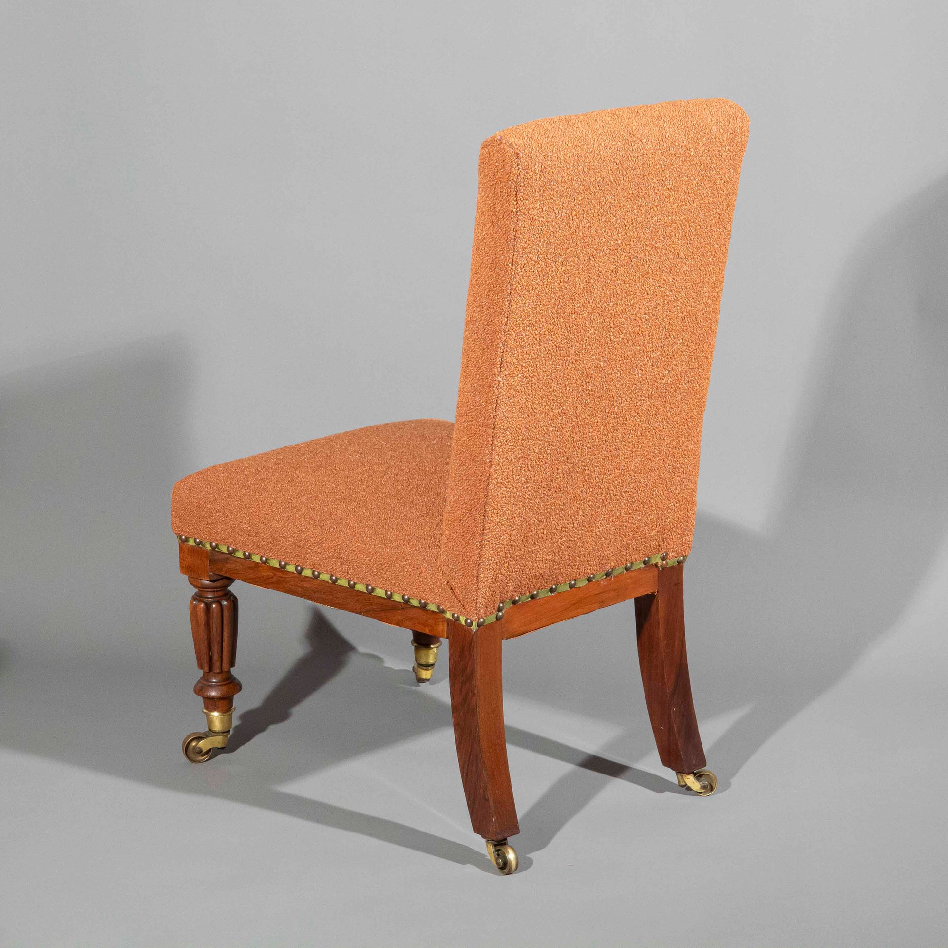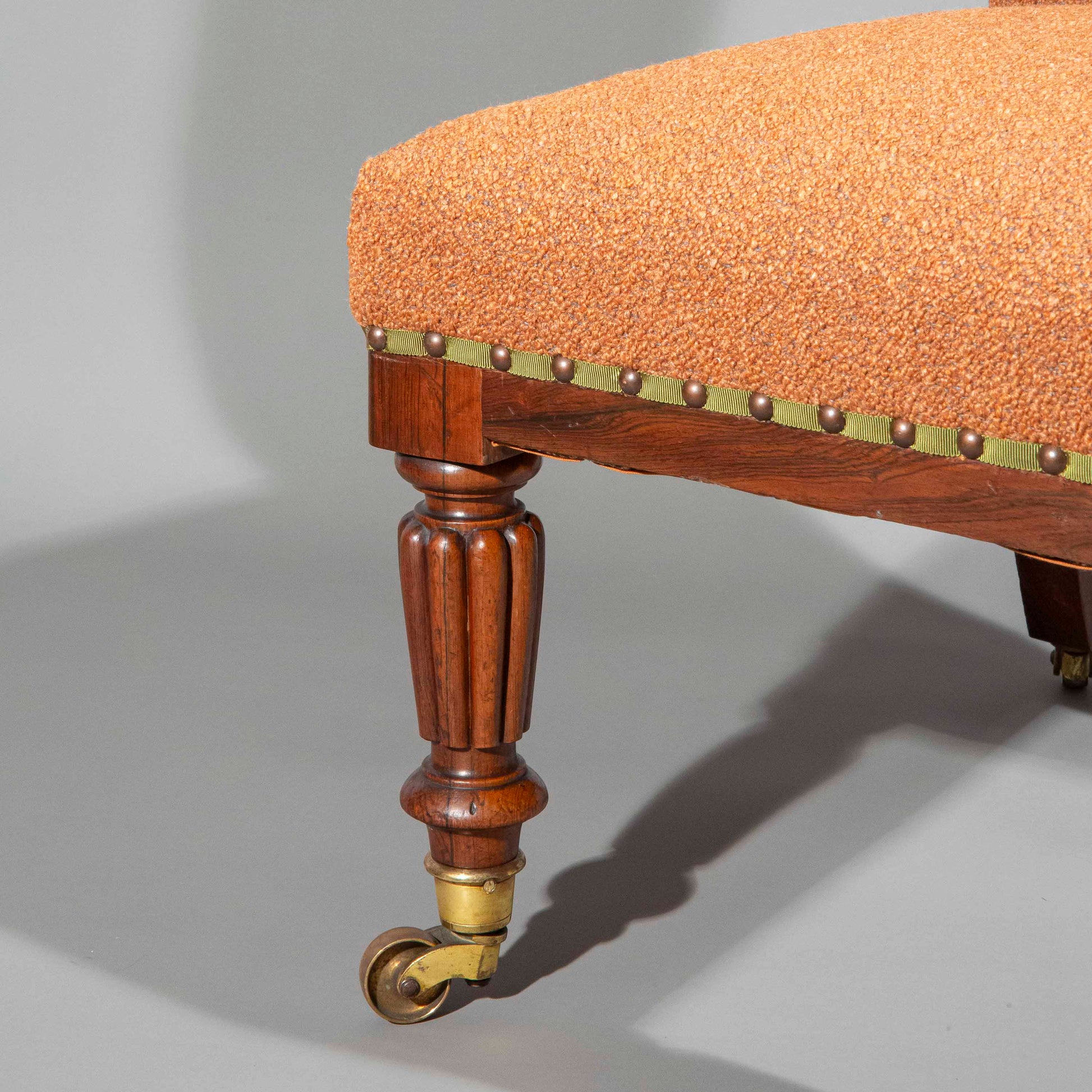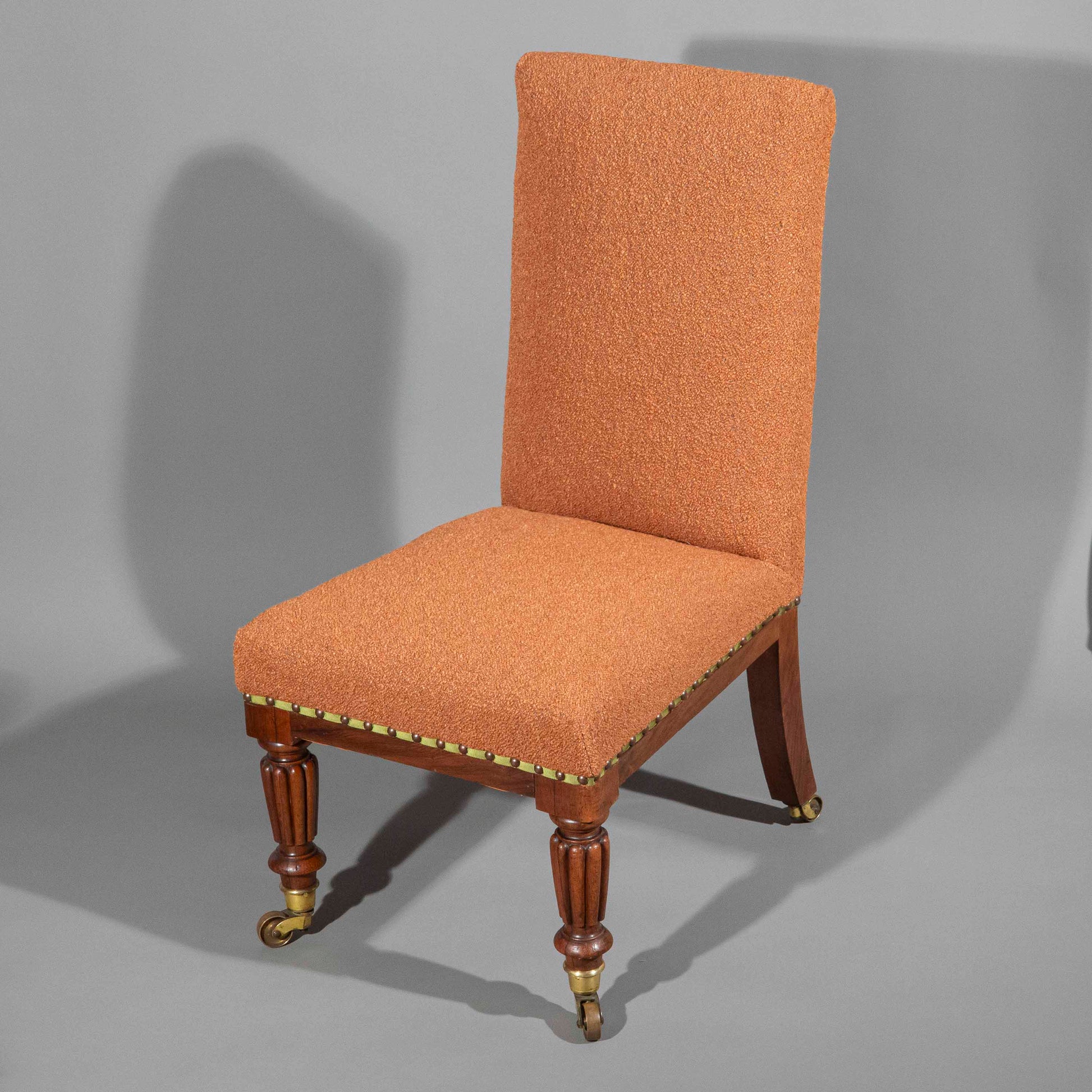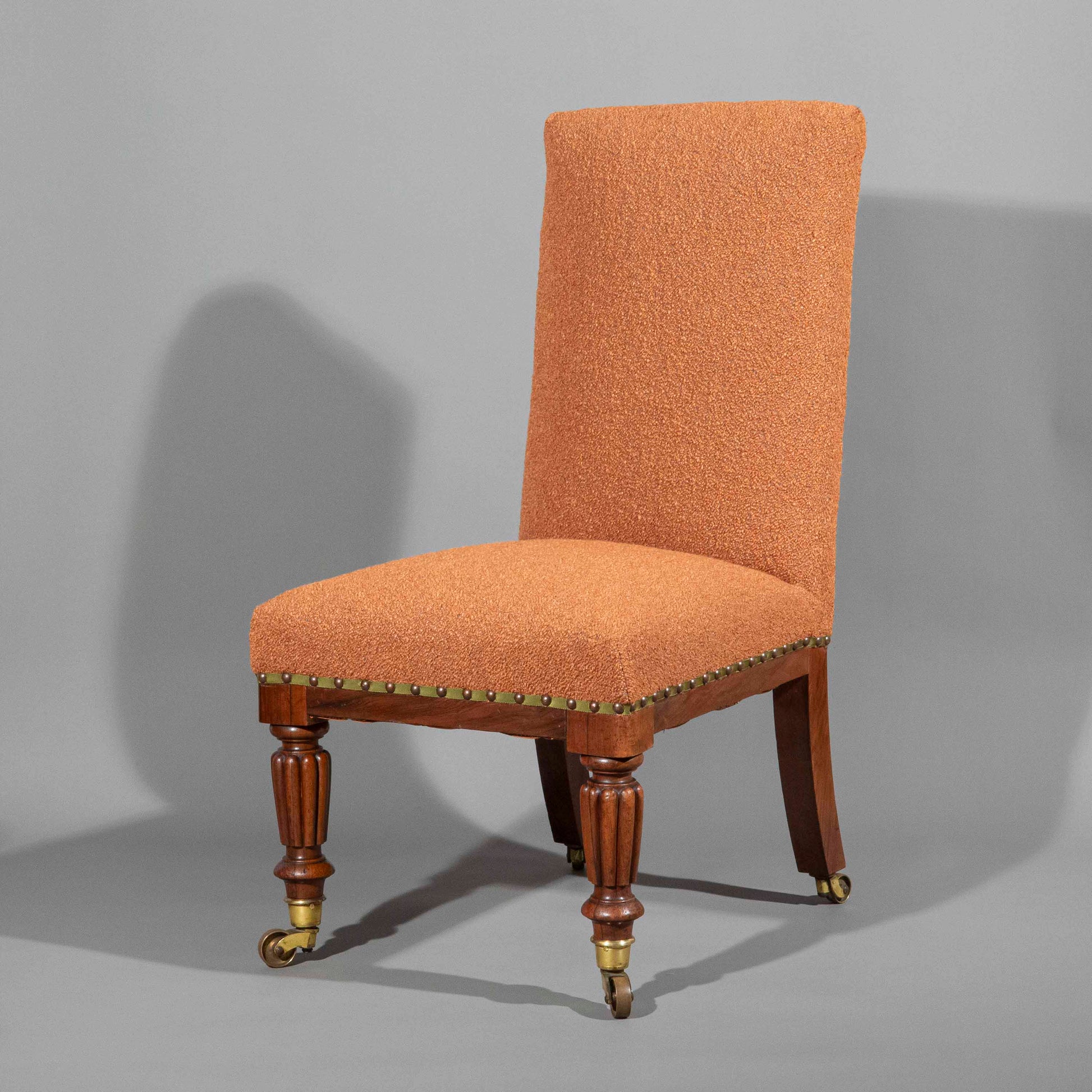 A very smart and comfy early 19th century slipper chair, newly recovered in super-chic C&C Milano 100% wool Italian textile, exquisitely finished to perfection with patinated bronze studs over olive trim. England, circa 1820.