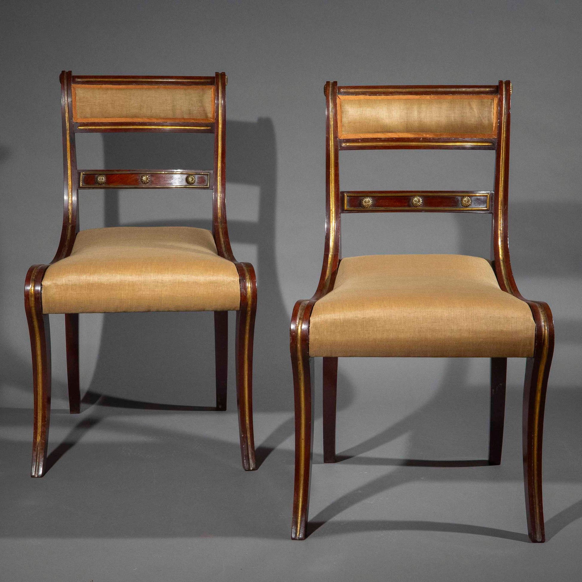 A pair of elegant Regency period 'Klismos' chairs, enriched with gilding and brass mounts