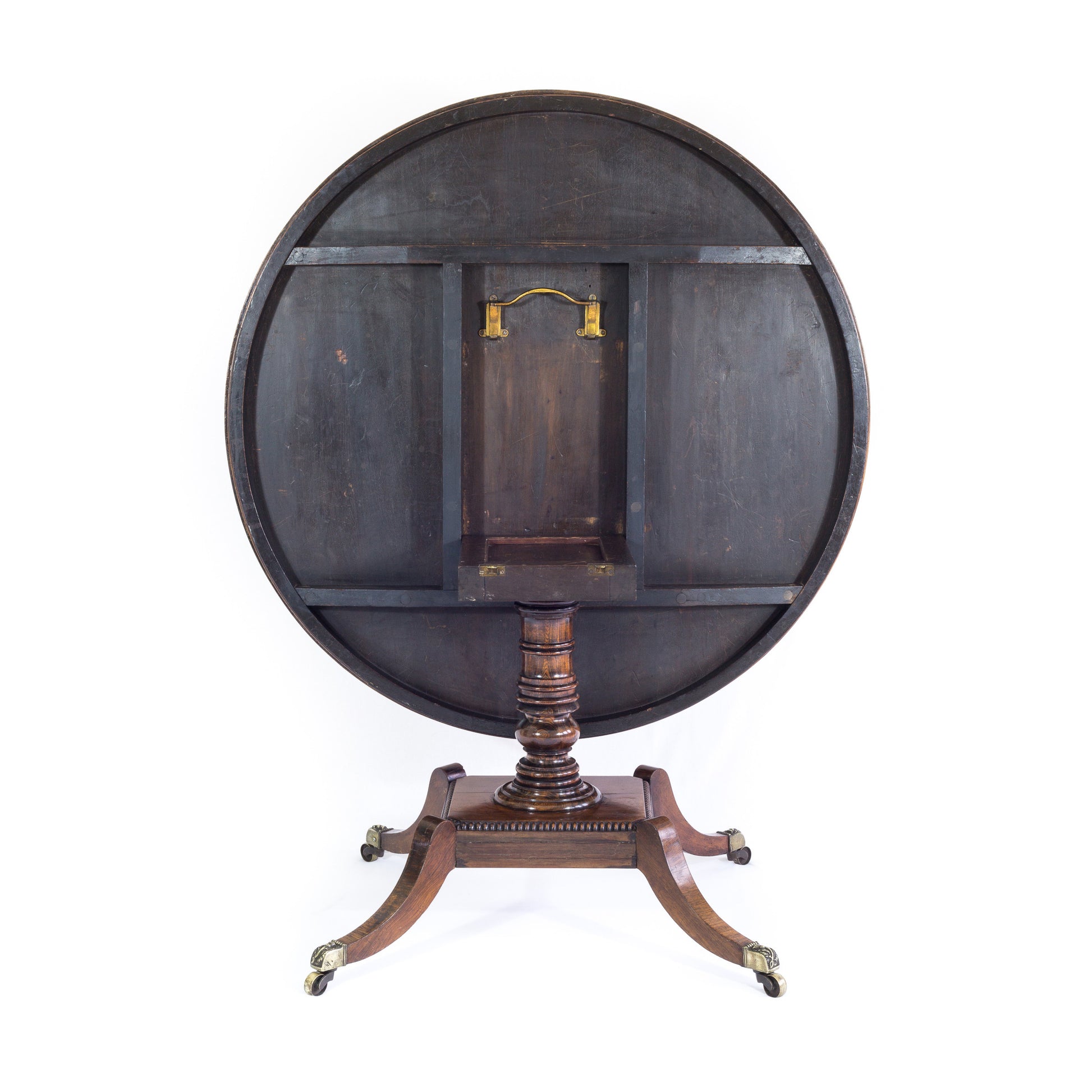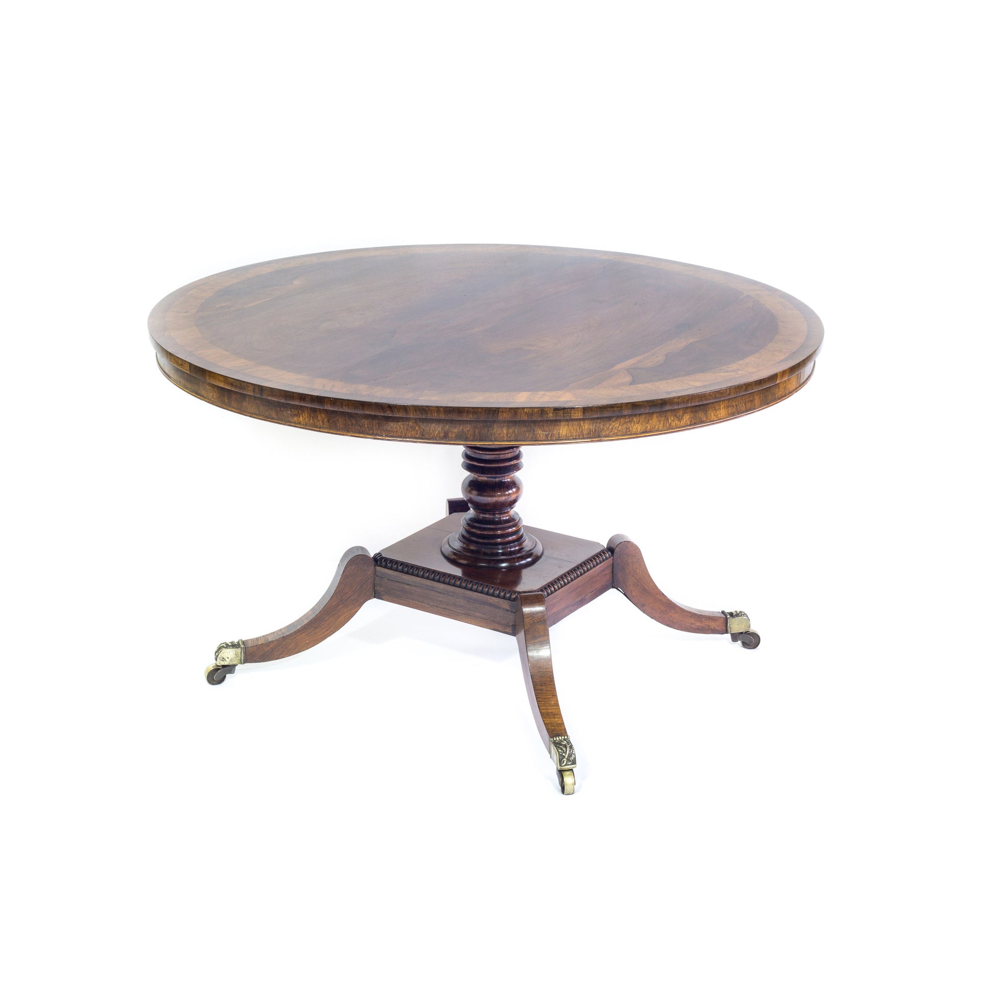 An elegant Regency Tilt-Top Breakfast Table in Rosewood, with Burr Elm banding to the top.