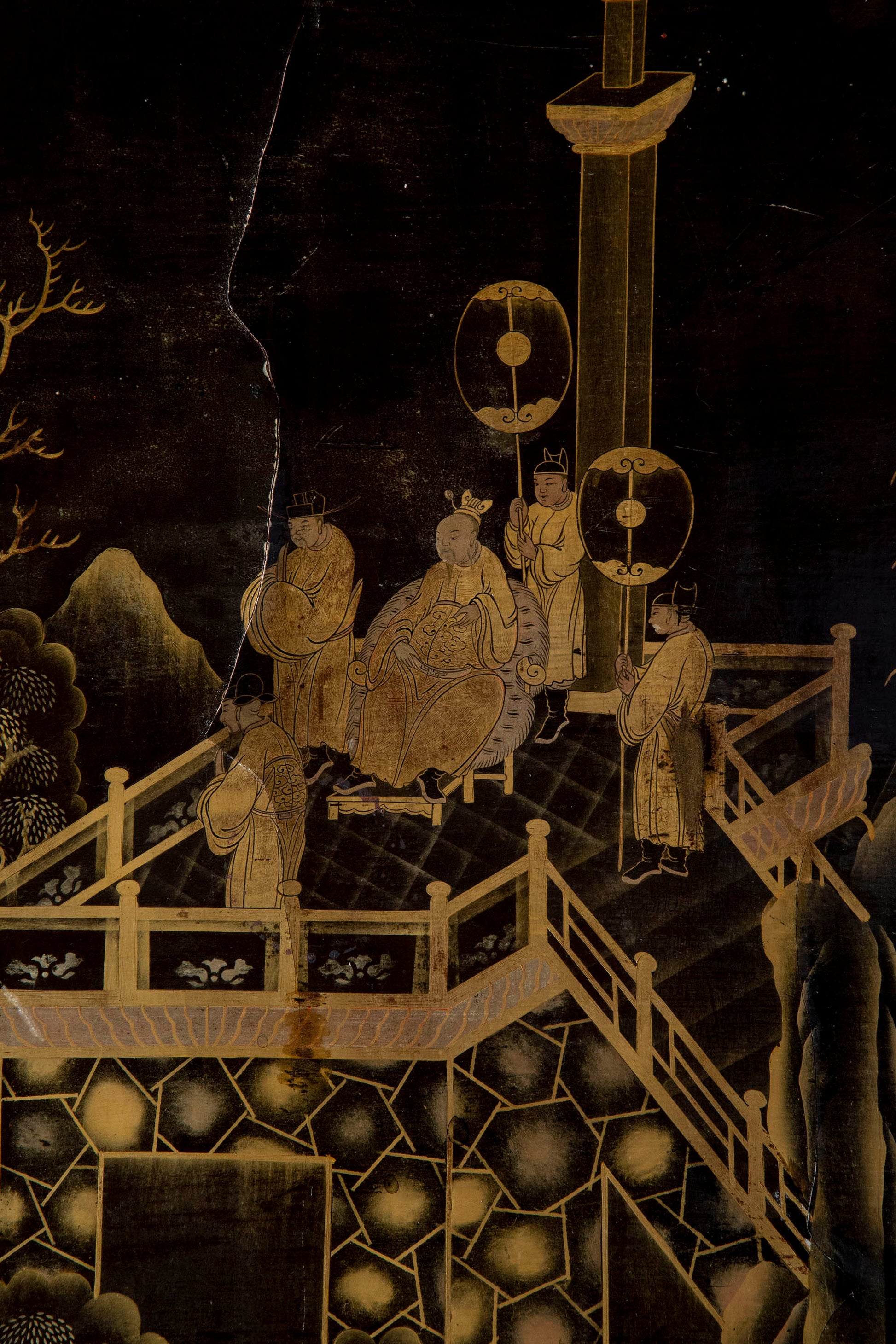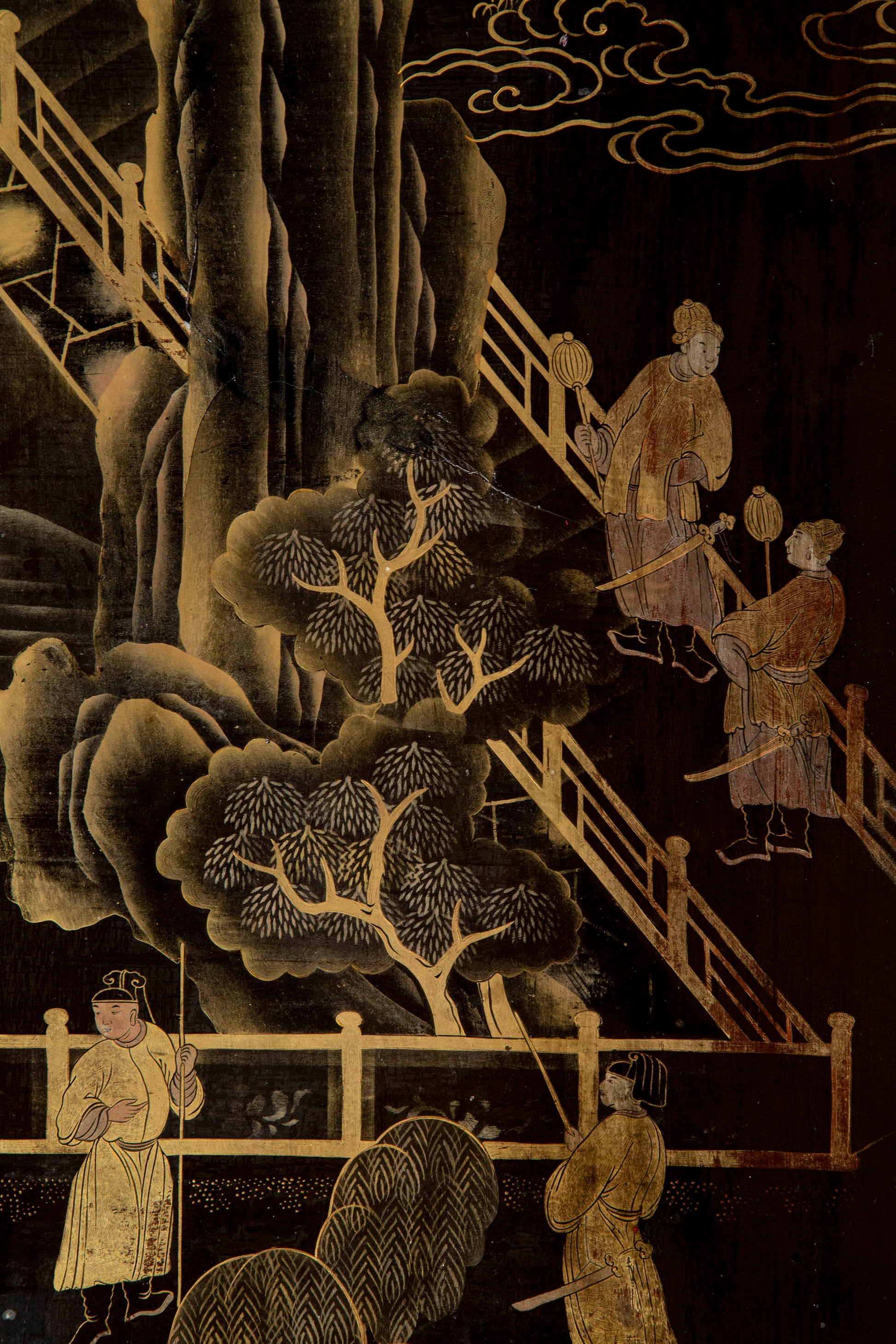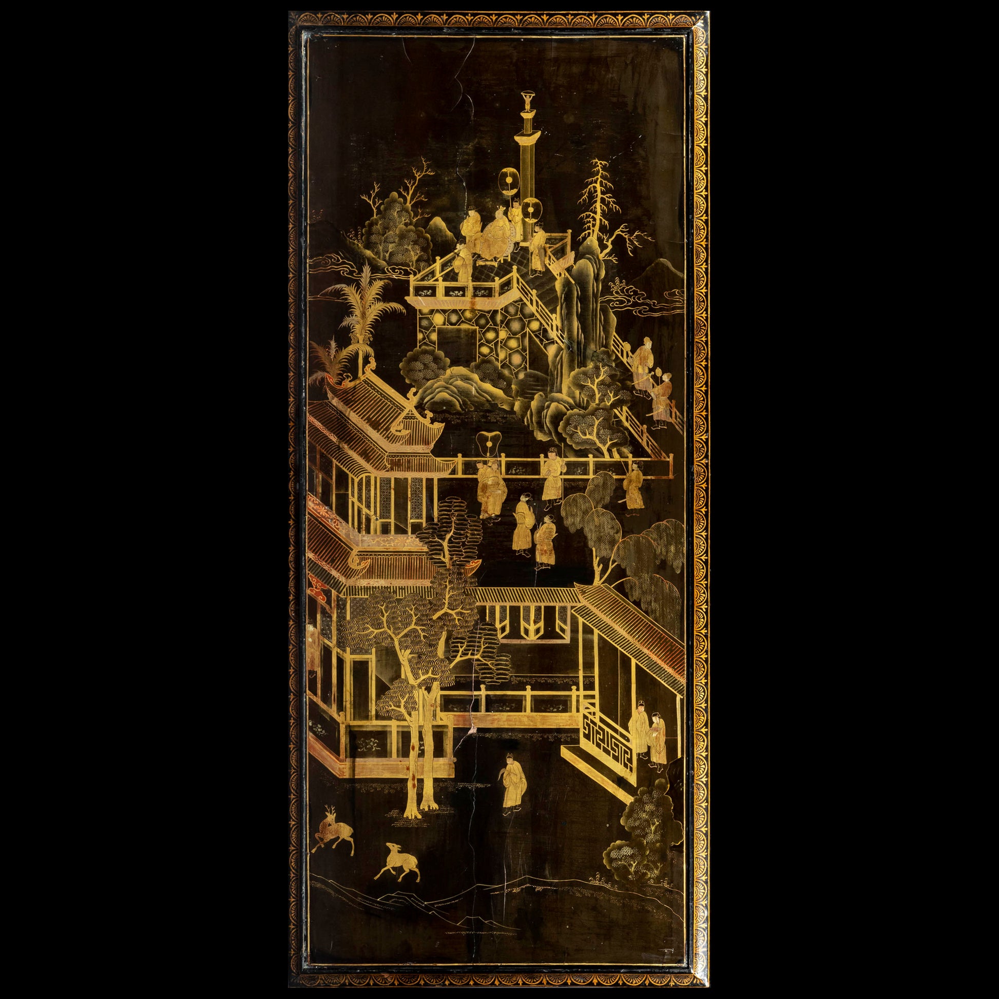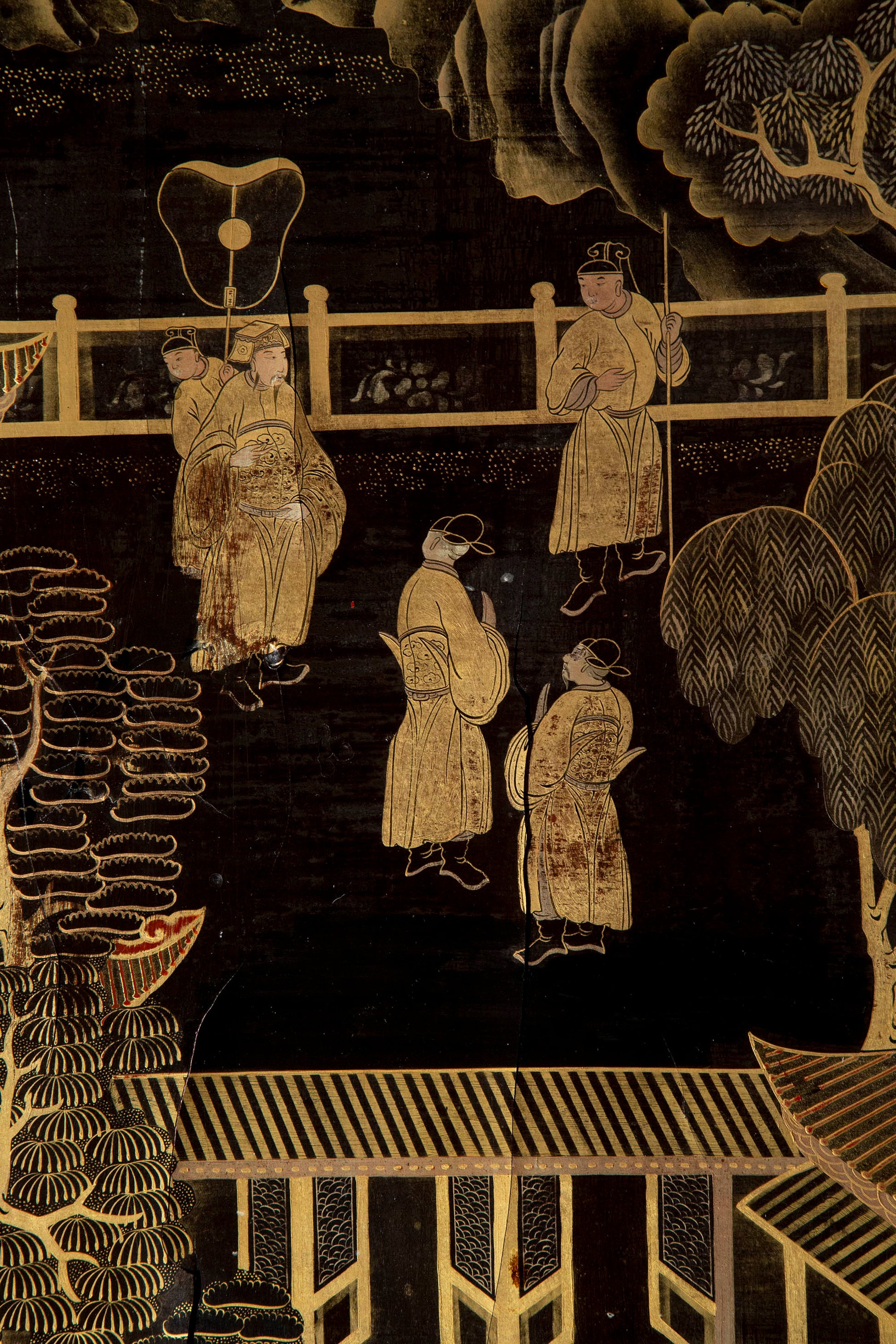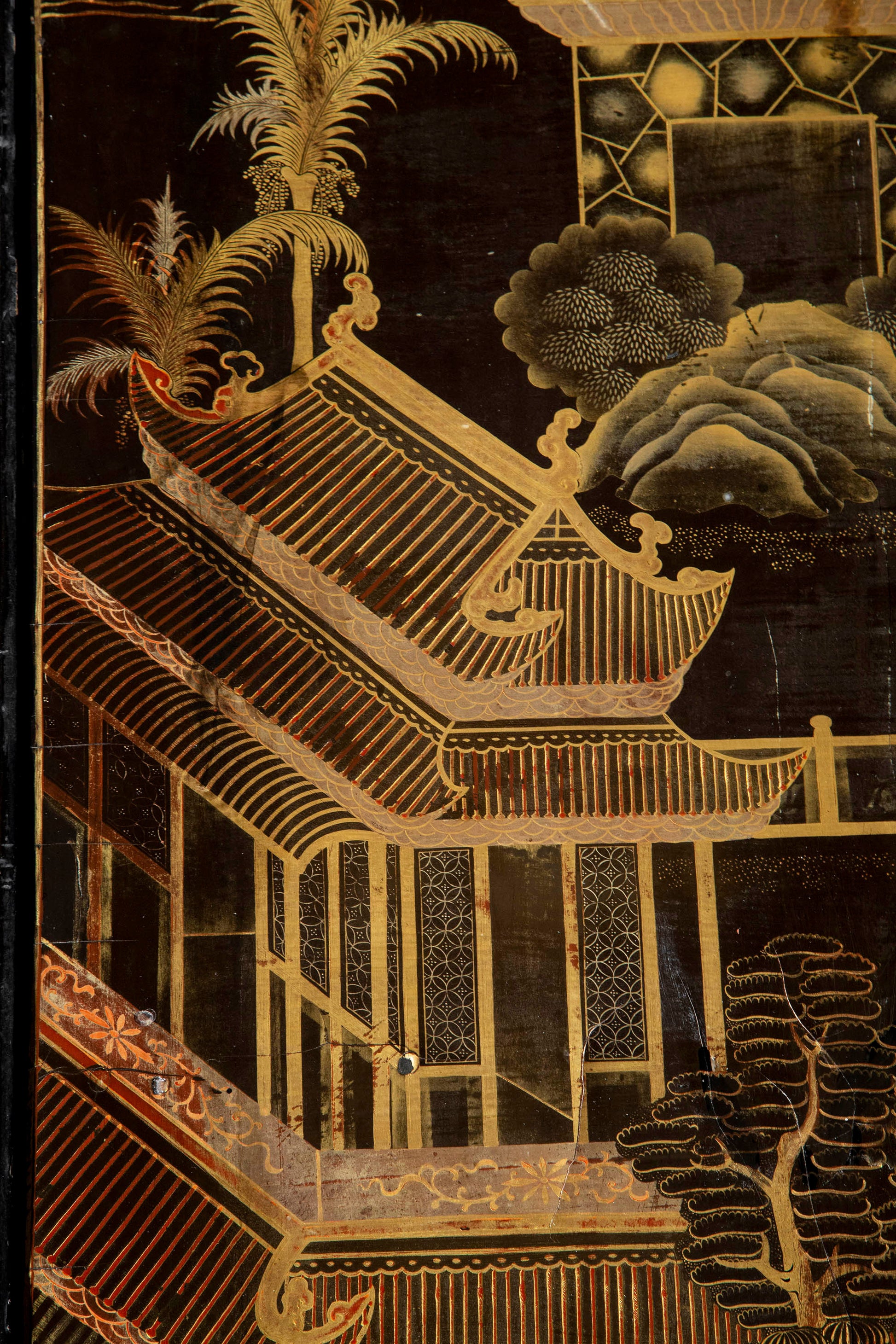 We like its broad proportions and thetastefully made conversion. The old lacquer panel, exquisitely decorated in gold leaf with scenes of court life, was repurposed in the early 20th century to form this beautiful table.