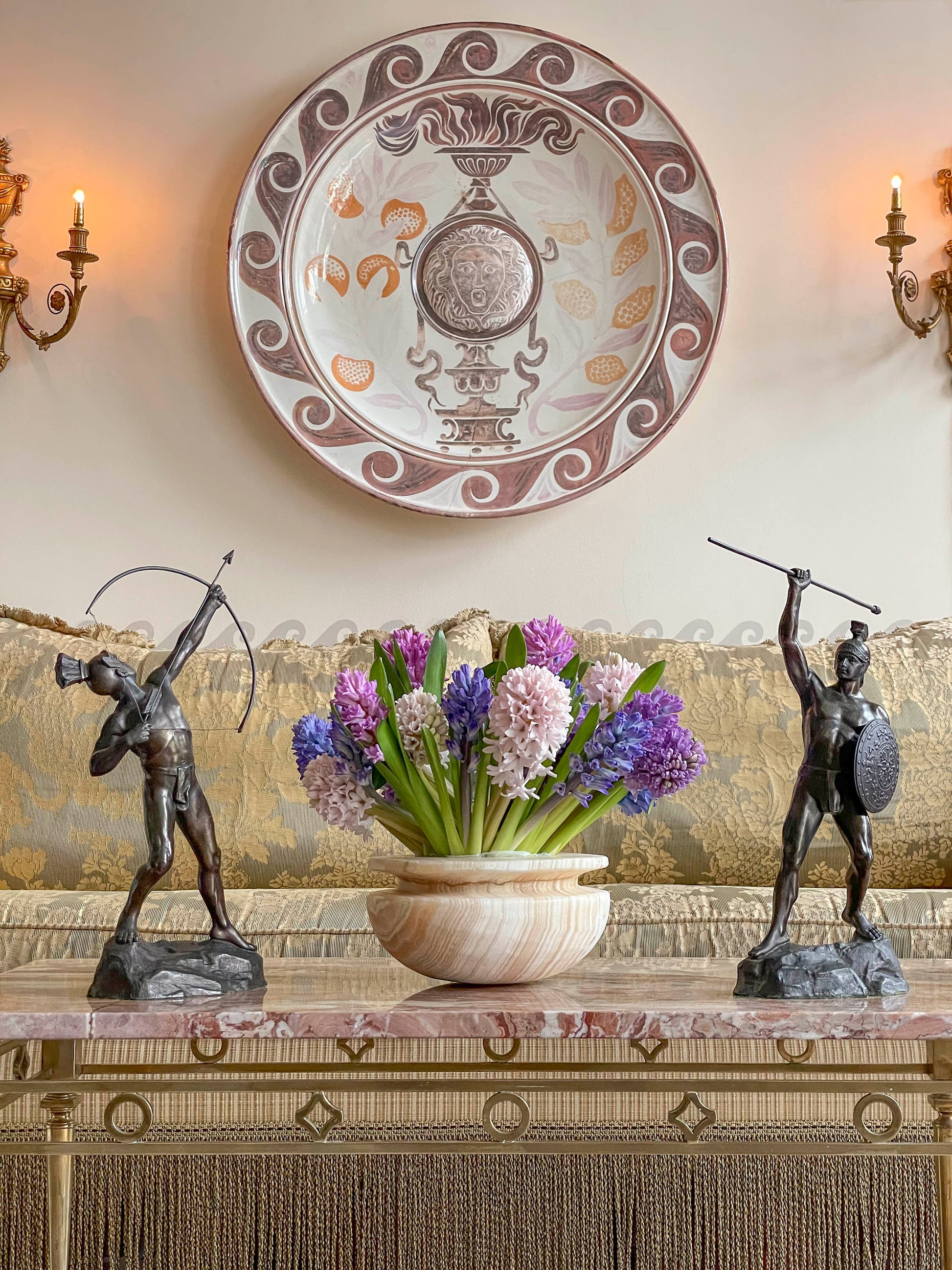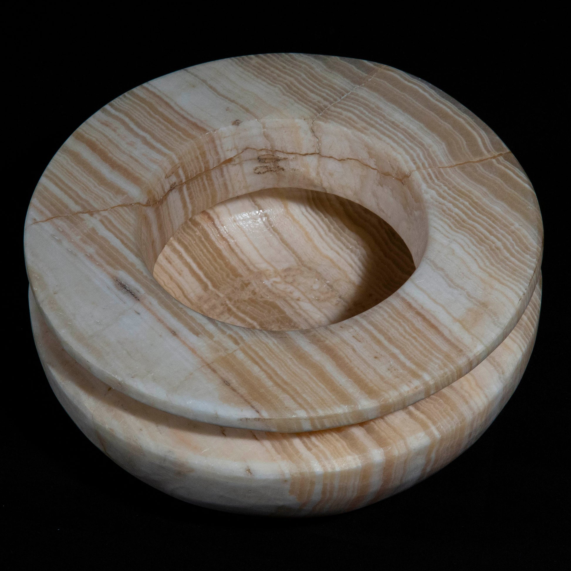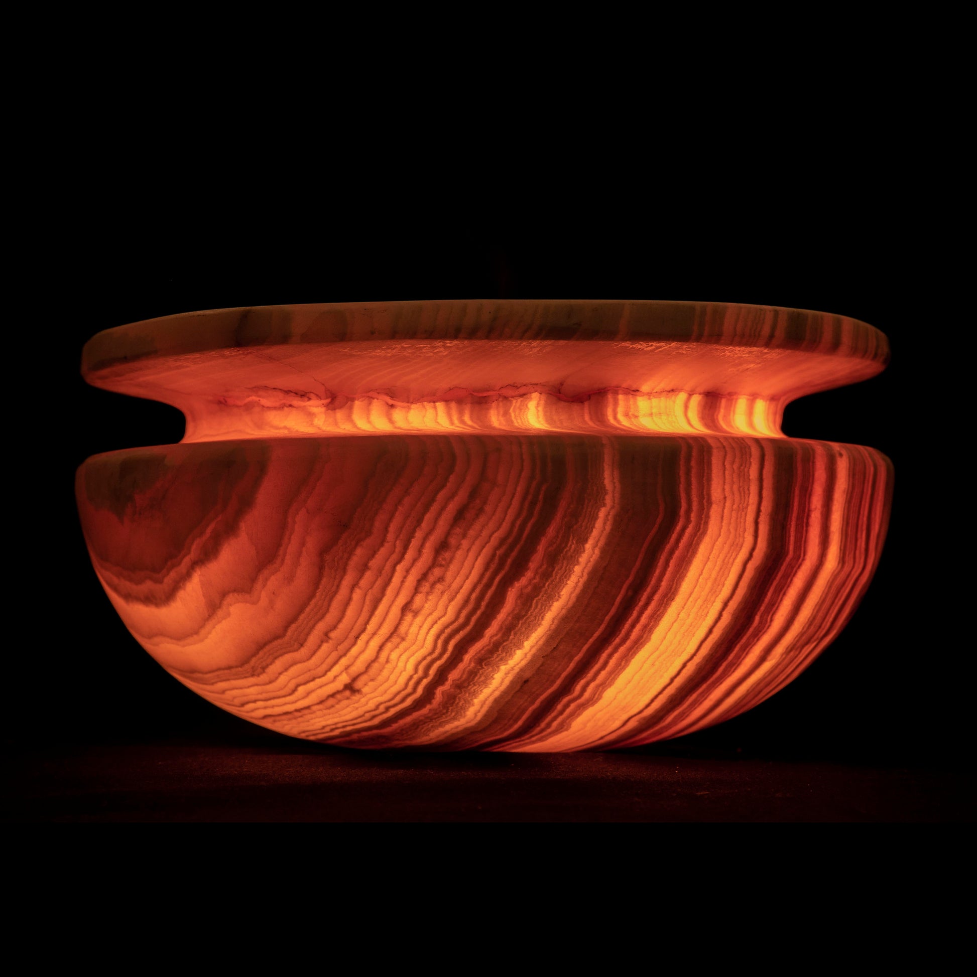 The large size, smart shape and dramatic veining make this unusual vessel very decorative and suited for a variety of interiors.