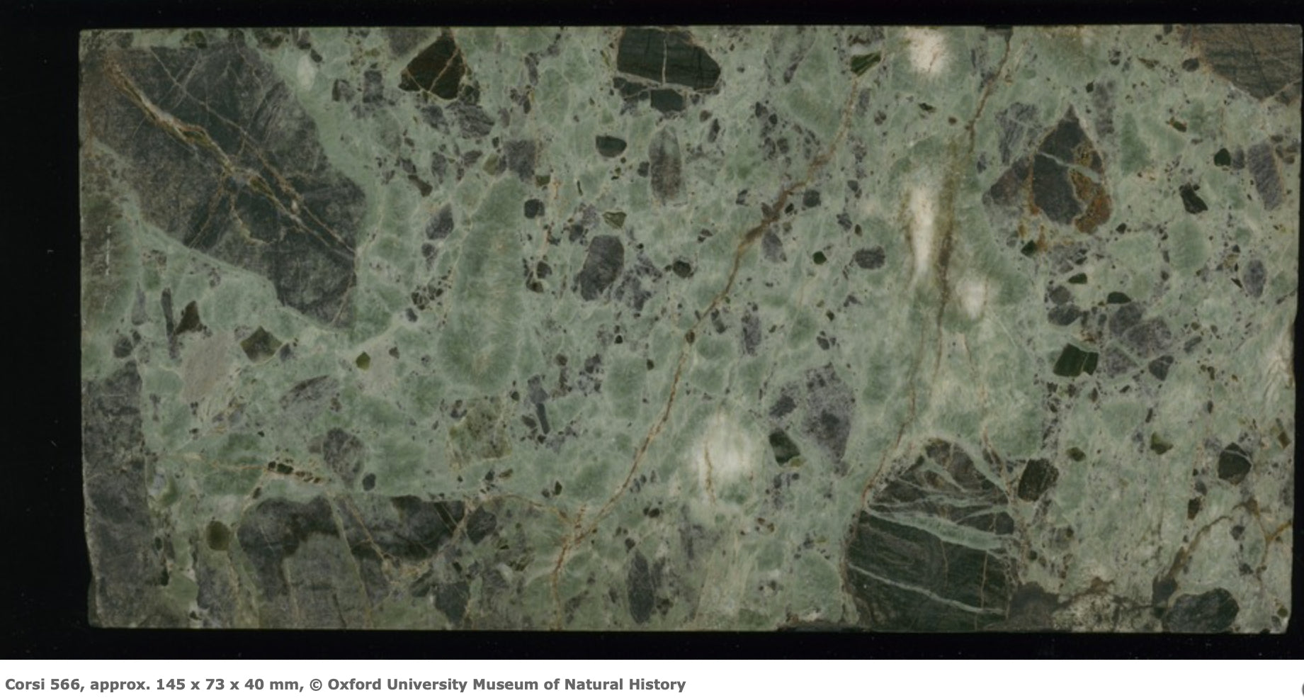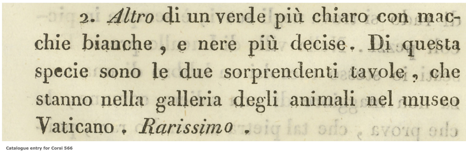 Verde Antico marble is considered rare and historically significant. The Corsi Collection of Decorative Stones at Oxford University Museum of Natural History catalogue entry 566. (143.2) reads: “Another of a lighter green, with white and more definite black markings. The two amazing tables in the Galleria degli Animali in the Vatican Museum are of this type. (Very rare).”