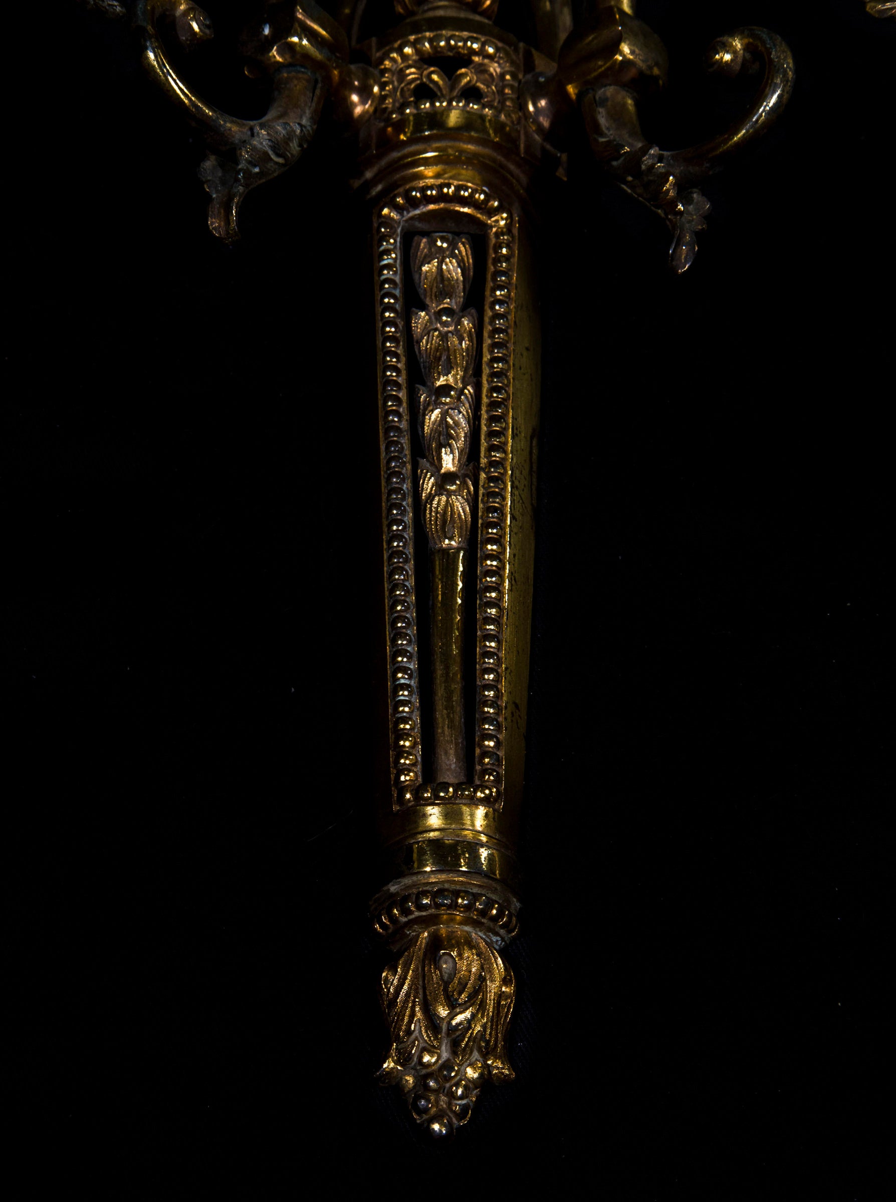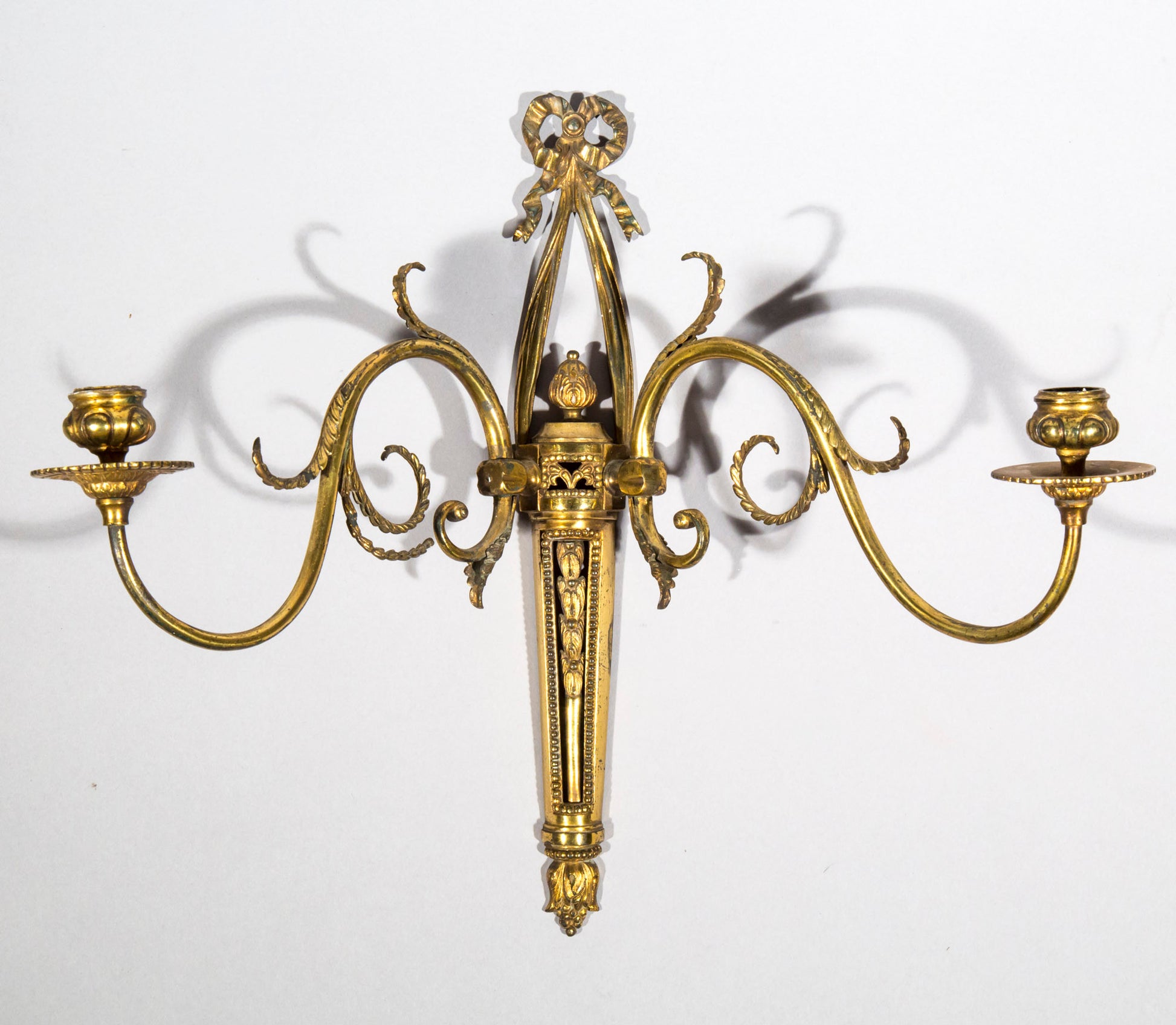 A charming gilt bronze wall light with two sconces, in the Louis XVI neoclassical style.
