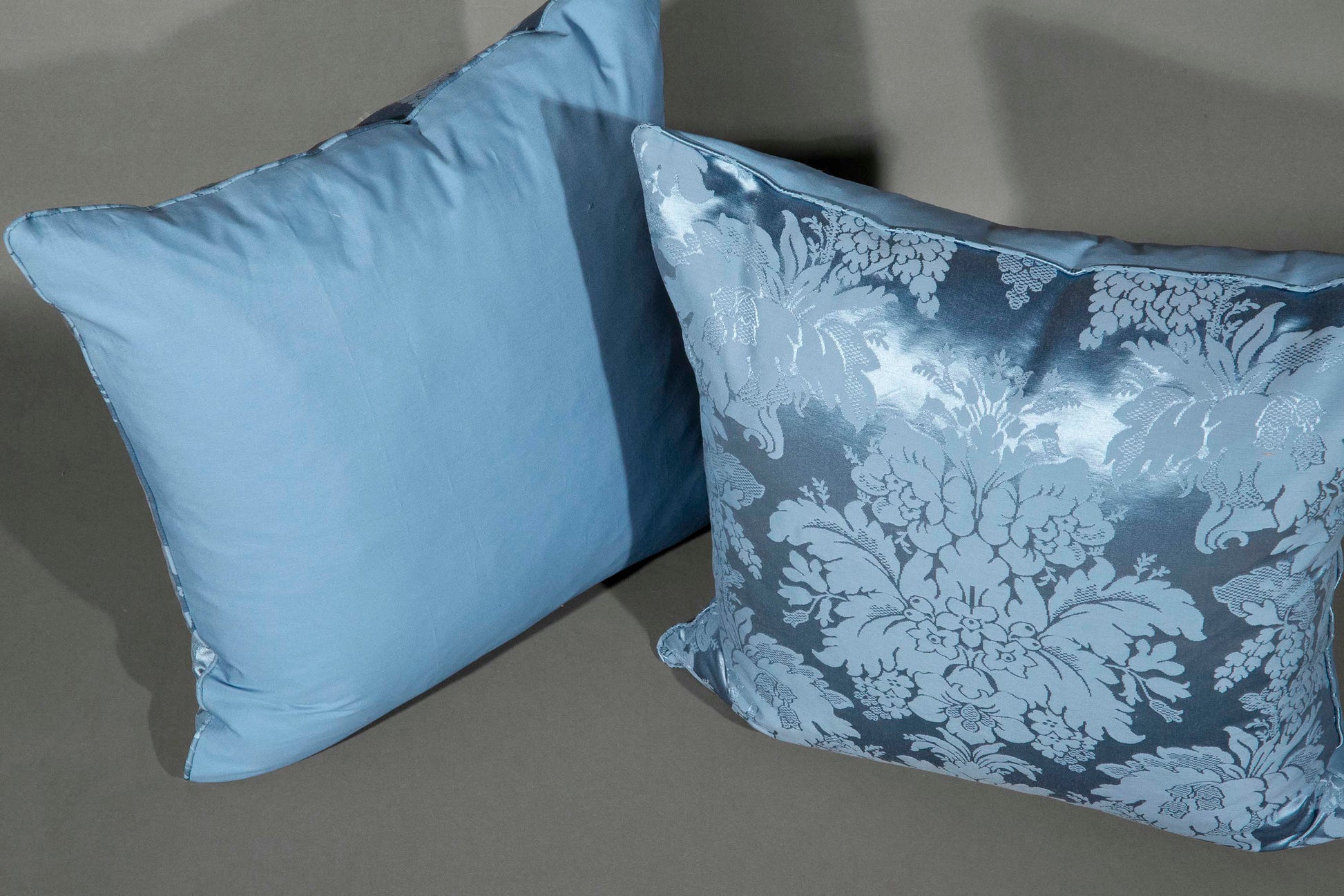 Large decorative scatter cushions made of finest vintage French silk damask, with modern cotton backing and feather filling. Hand-finished, no zips, no plastic, no polyester.