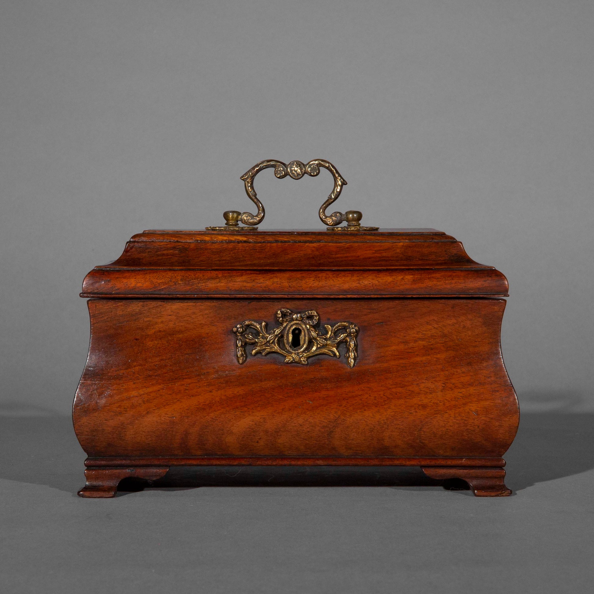 A small George II period bombé tea caddy, after designs by Thomas Chippendale