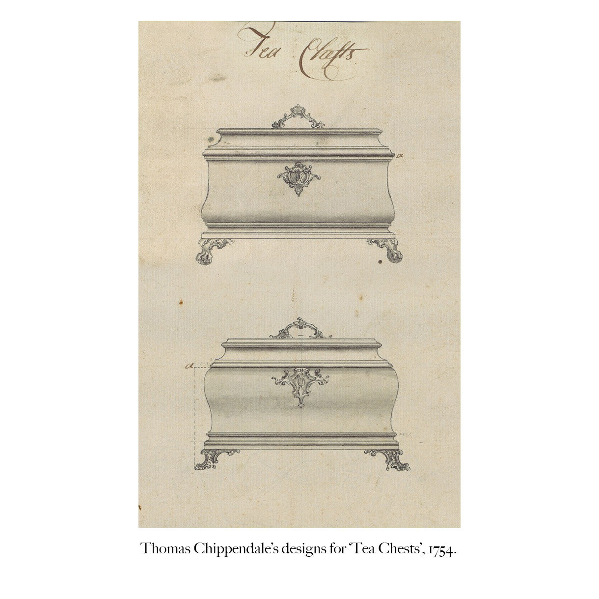 The English satirist Jonathan Swift (1667–1745) wrote in his Directions to Servants (1729) about "small chests and trunks with lock and key, wherein they keep the tea and sugar." Executed in a rather restrained Rococo style, these caddies display some similarities to designs in the first edition of Thomas Chippendale’s Gentleman and Cabinetmaker’s Director (1754).