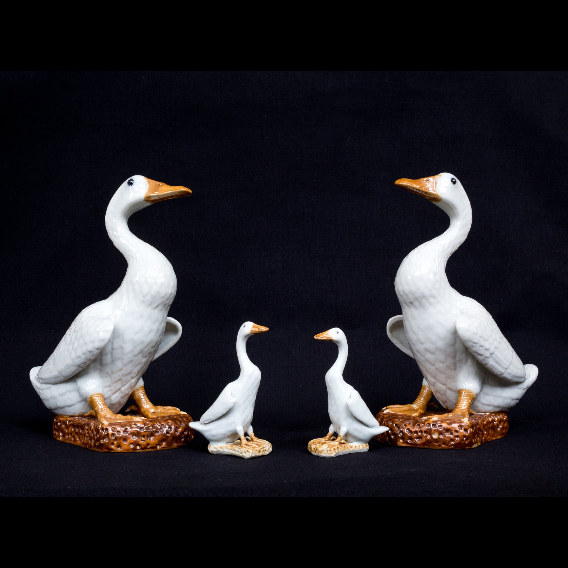 A highly collectible set in a rare form of four porcelain Peking ducks, very elegant and well proportioned, beautifully detailed. They all slightly differ from each other in shape as expected from the handmade pieces.