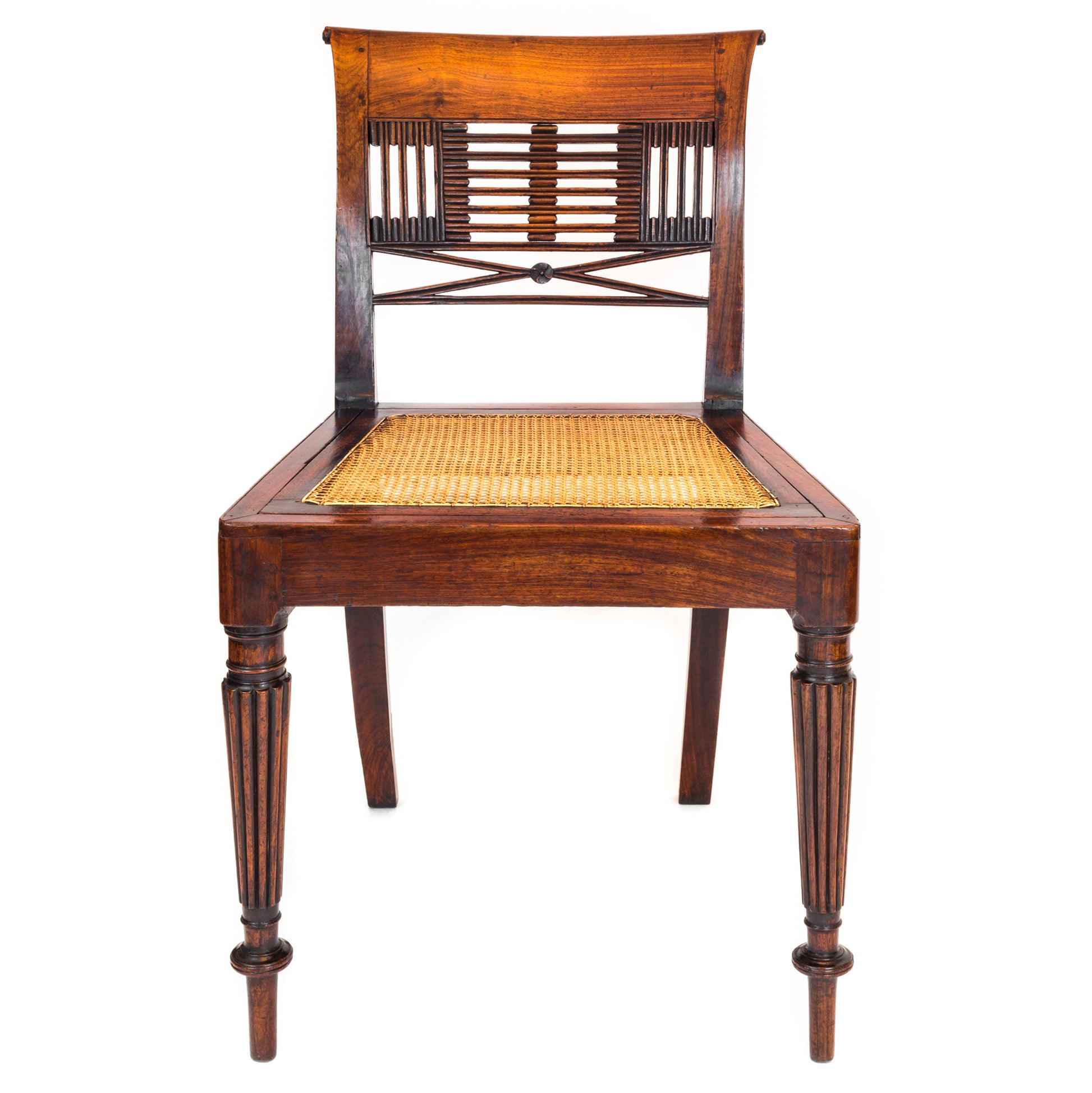A rare Regency period colonial side chair in solid padouk made for English market,