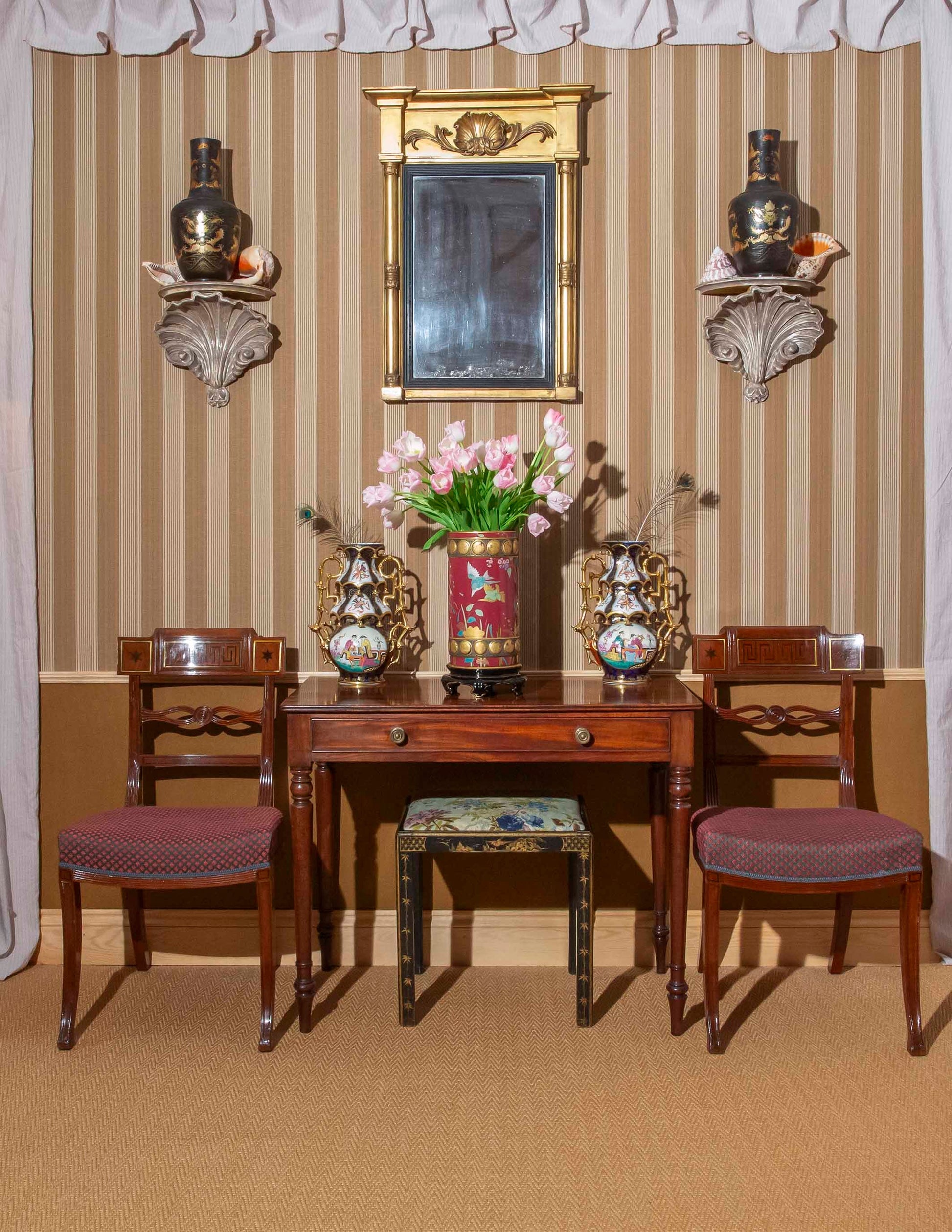 A very similar Japanese-inspired model, listed as shape no. 1697 in the Mintons archives, is attributed to Christopher Dresser, who travelled to Japan in 1876–7 as an emissary of the British Government and later pioneered the development of the Anglo-Japanese style in the decorative arts. Comparable examples include a pair exhibited at the Paris Universelle Exposition, 1878 (see J. Joans, Mintons: The First Two Hundred Years of Design & Production, Shrewsbury, 1993, pp. 103 and 105), formerly in the Thomas Goode Collection. A further pair was sold at Christie’s New York, 20 October 2009, lot 234 ($32,500). Another pair, signed by C. Toft, was sold at Christie’s New York, 18 October 2012, lot 560 ($20,000).