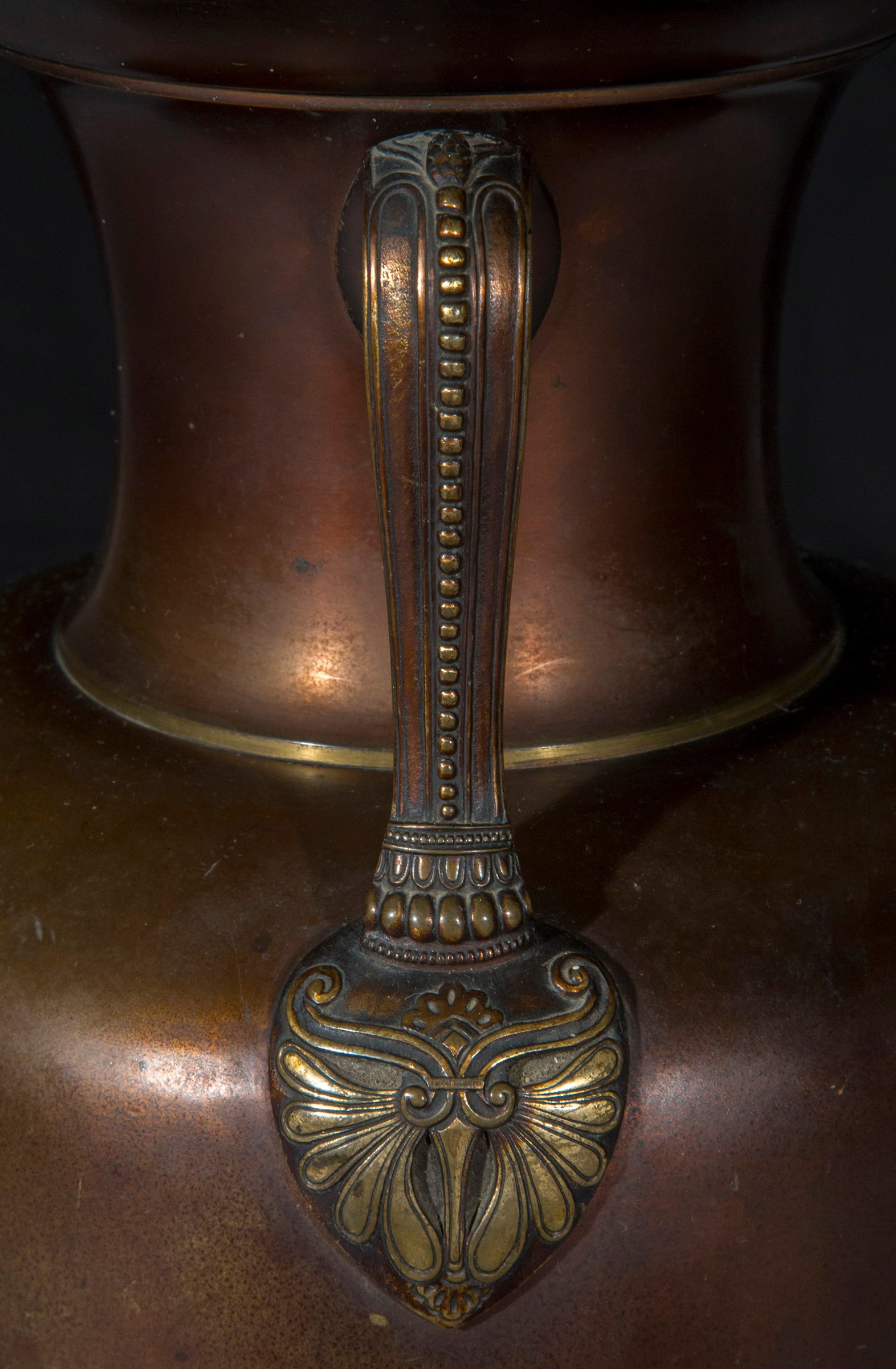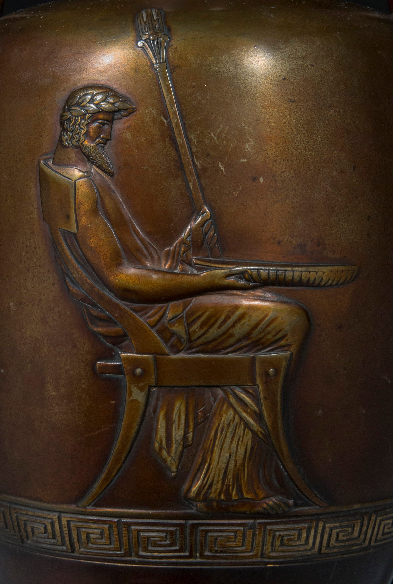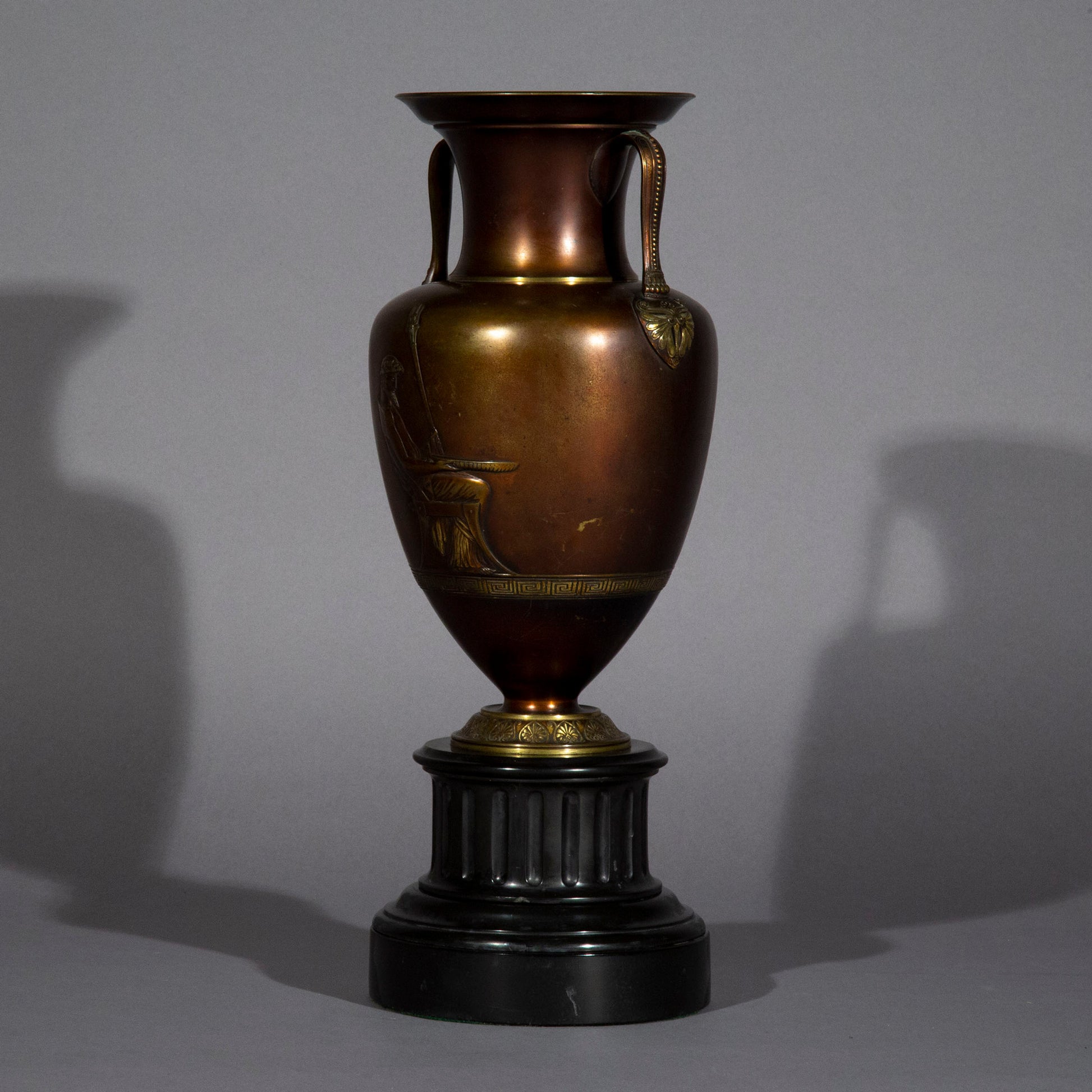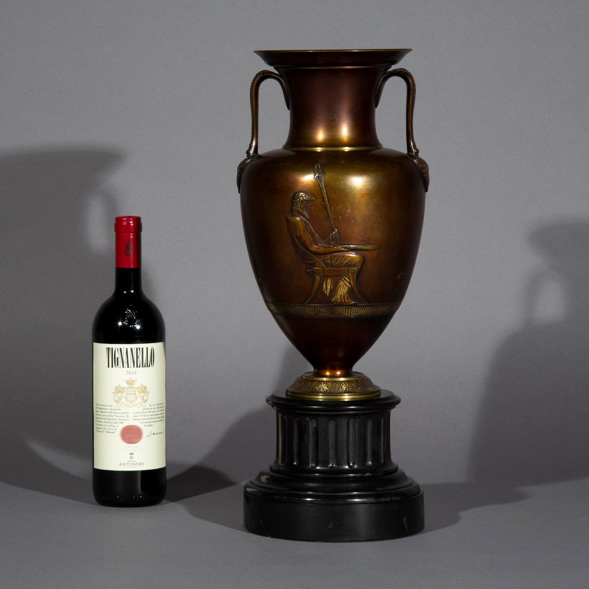 An impressive, very decorative Grand Tour bronze amphora on a black marble socle base,
