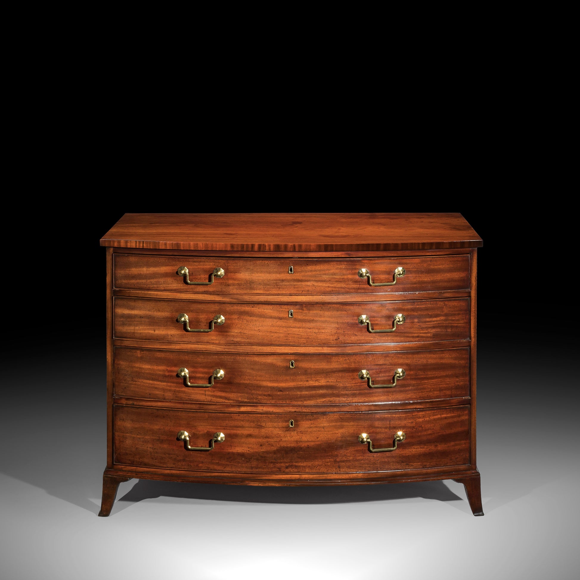 A fine George III Sheraton period bow-fronted mahogany chest of drawers, almost certainly by Gillows of Lancaster and London.