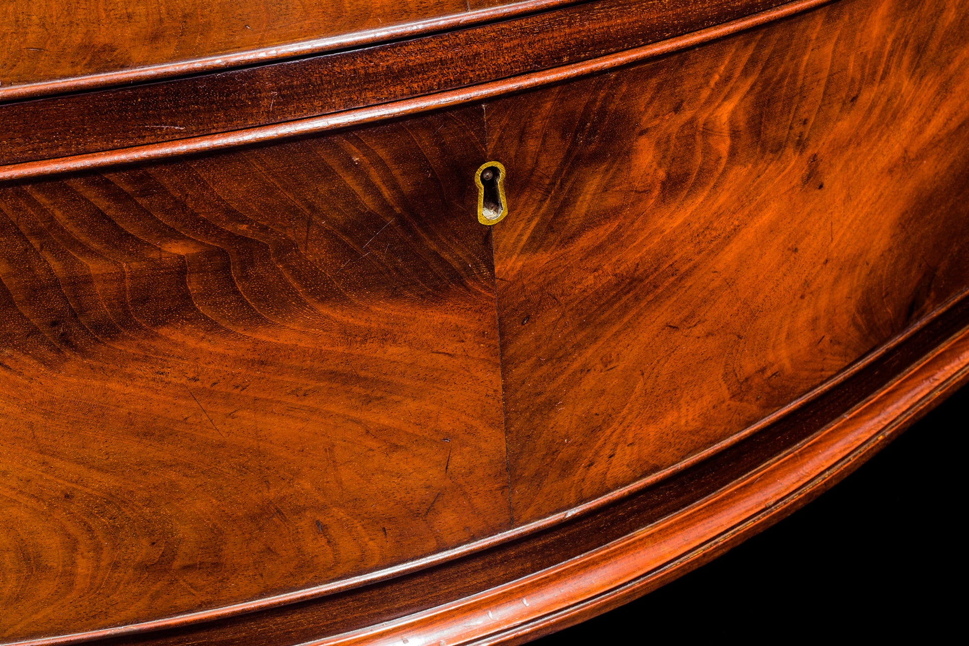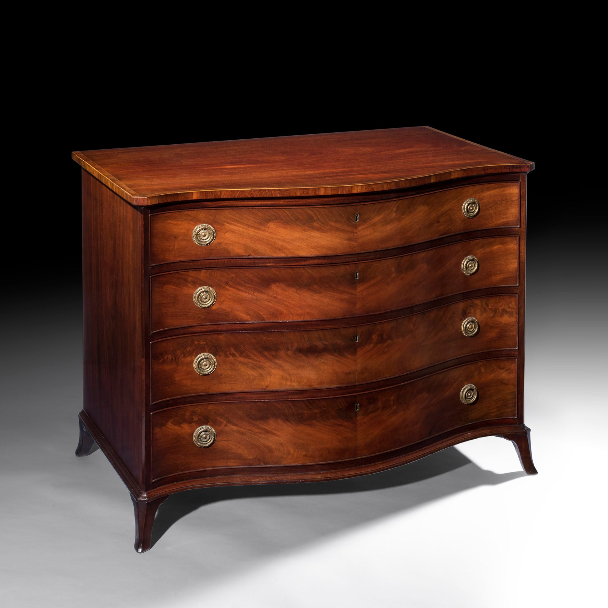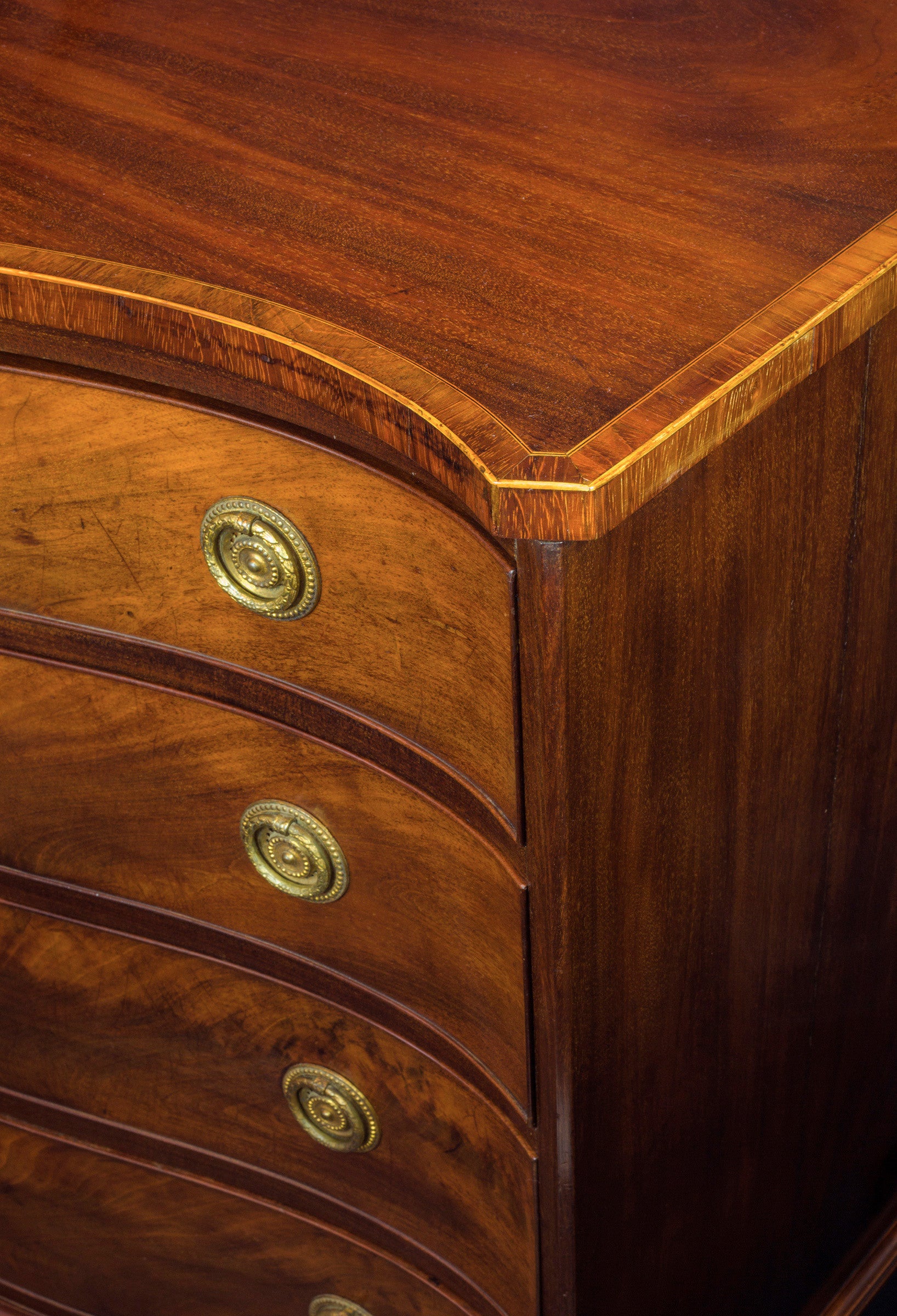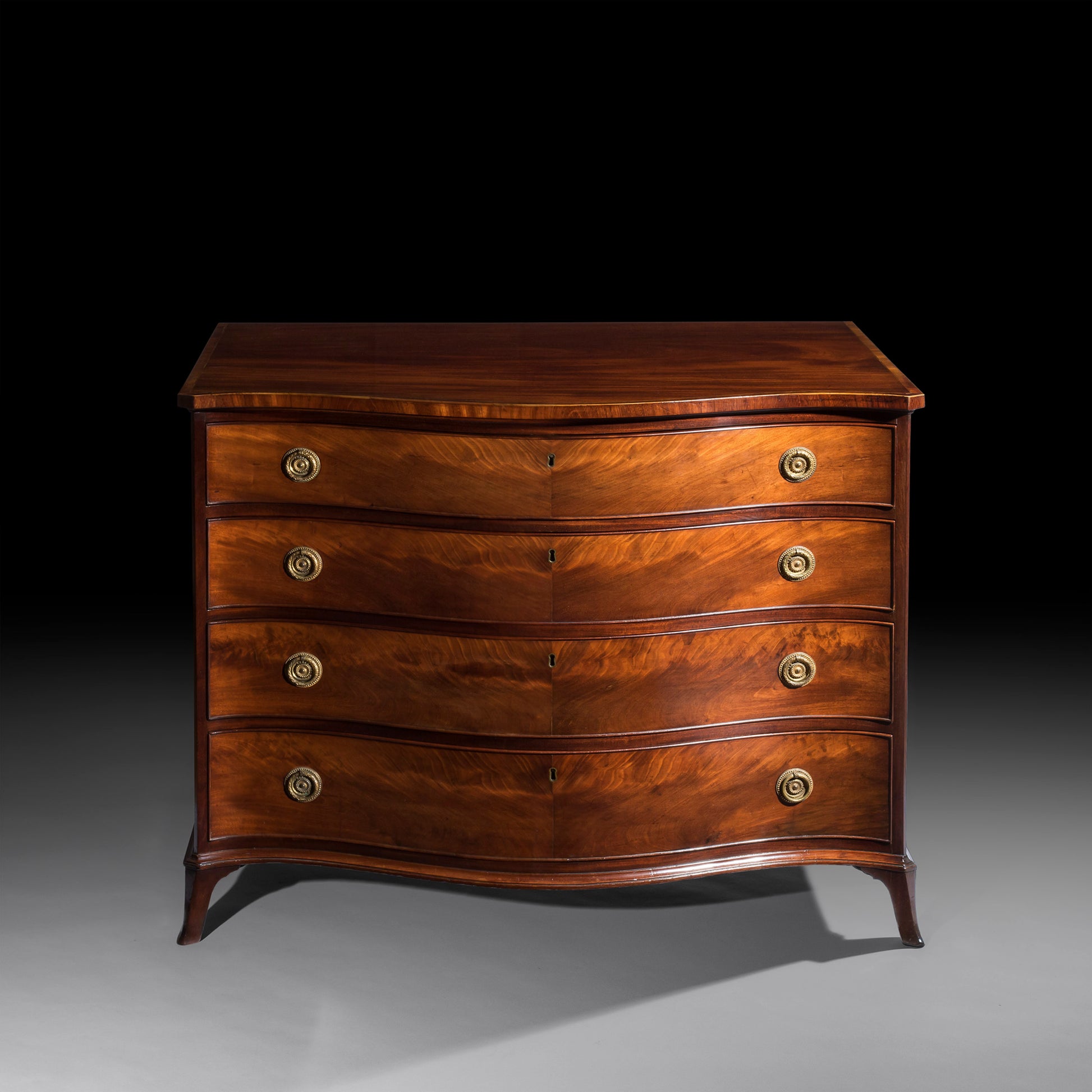 A fine George III Sheraton period serpentine fronted mahogany chest of drawers, almost certainly by Gillows of Lancaster and London.