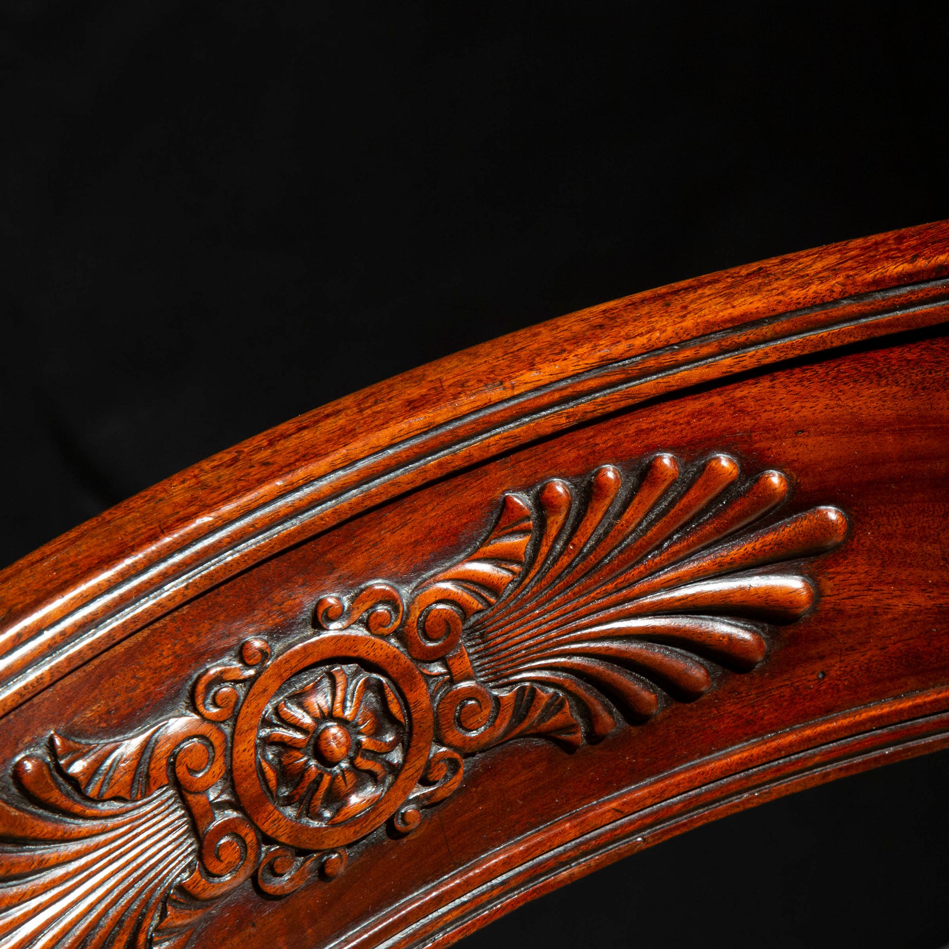 The bold, classical form of this chair and its subtle decoration is inspired by ancient Greek Klismos chairs – the design introduced around 2500 year ago, and revived in the 18th century by Thomas Hope, a connoisseur and collector turned designer. Superb quality and colour, very comfortable.