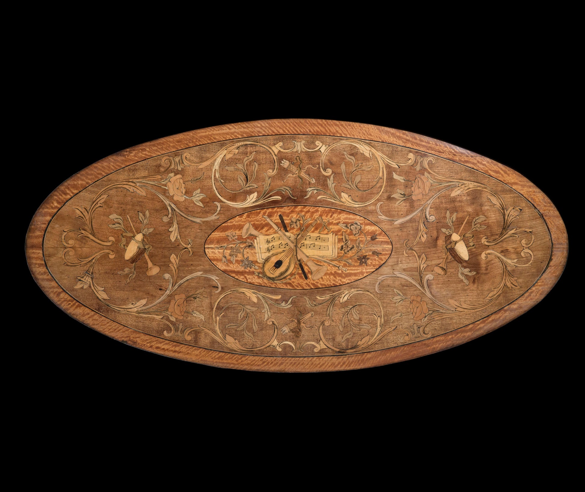 A fine two-tier marquetry coffee table, of exquisite Sheraton design and exceptional colour and patination.