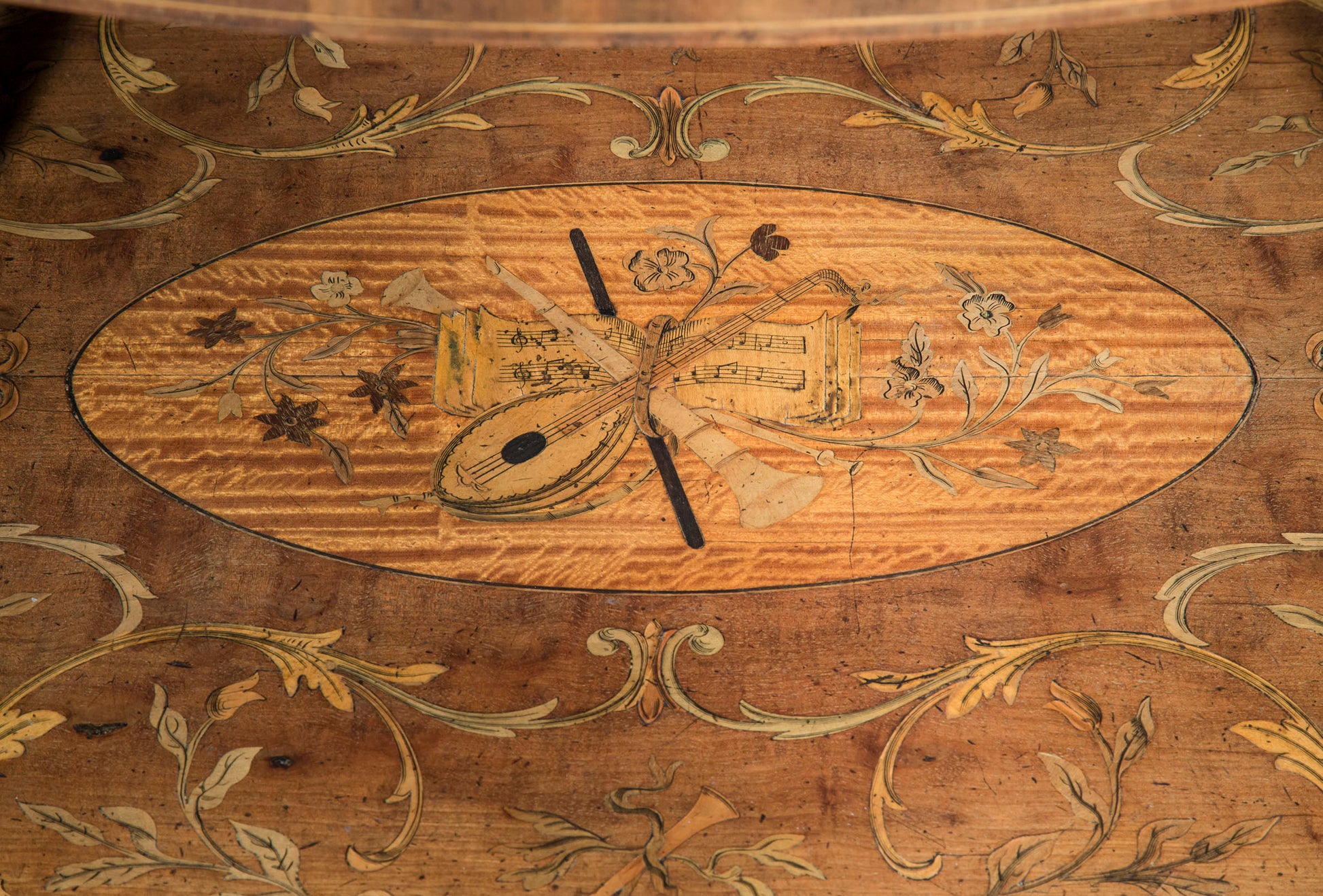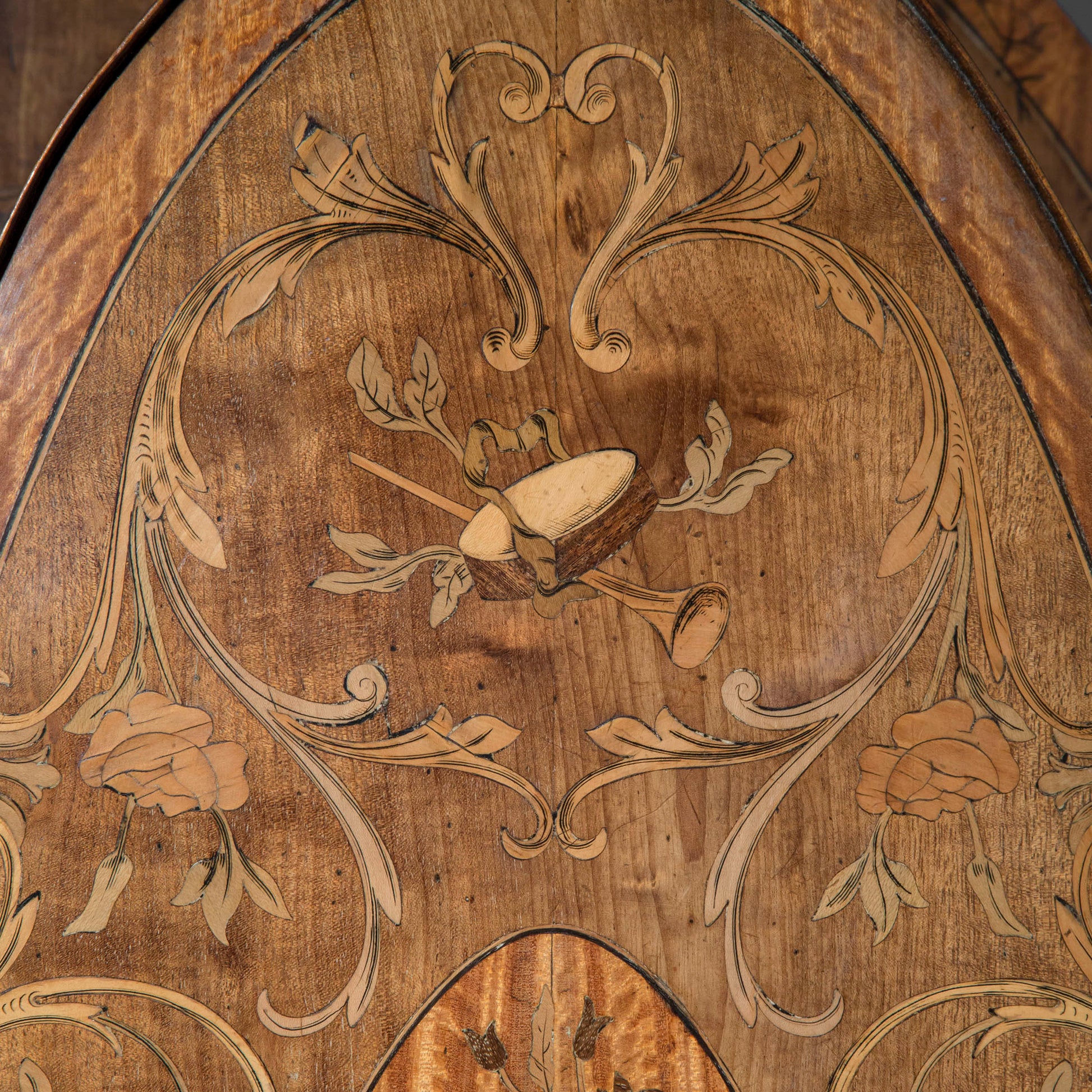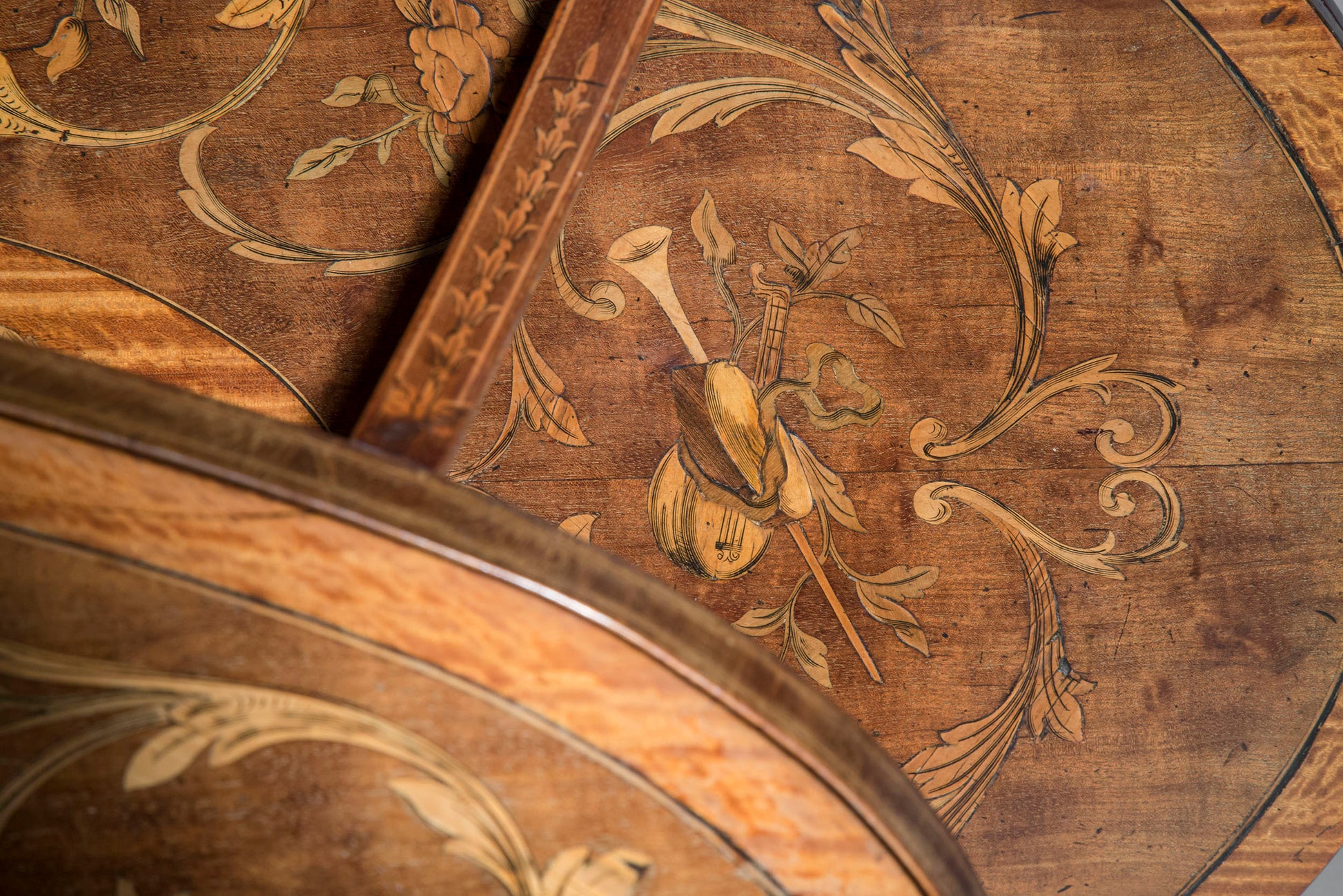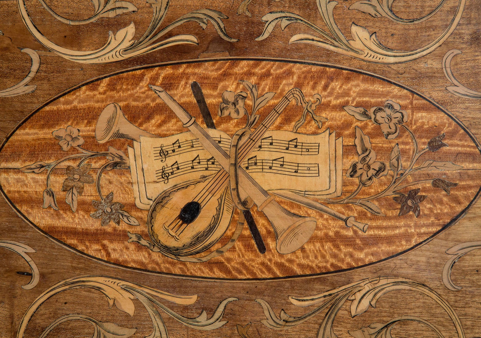 Its slender design, superb craftsmanship and exceptional colour are really outstanding and highly unusual for the period when it was made. The original surfaces have mellowed to a most pleasing, warm colour, and its exquisitely engraved marquetry looks and feels as stunning as Georgian.