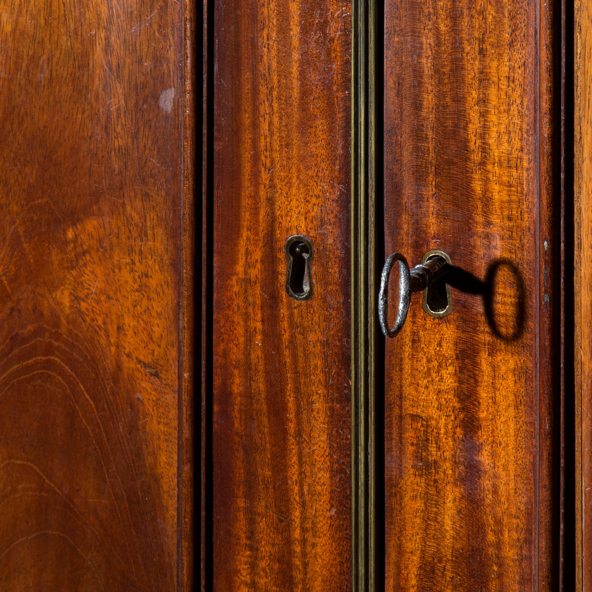 A fine George III Chippendale period clothes press, in finely figured faded mahogany, now converted to hanging space
