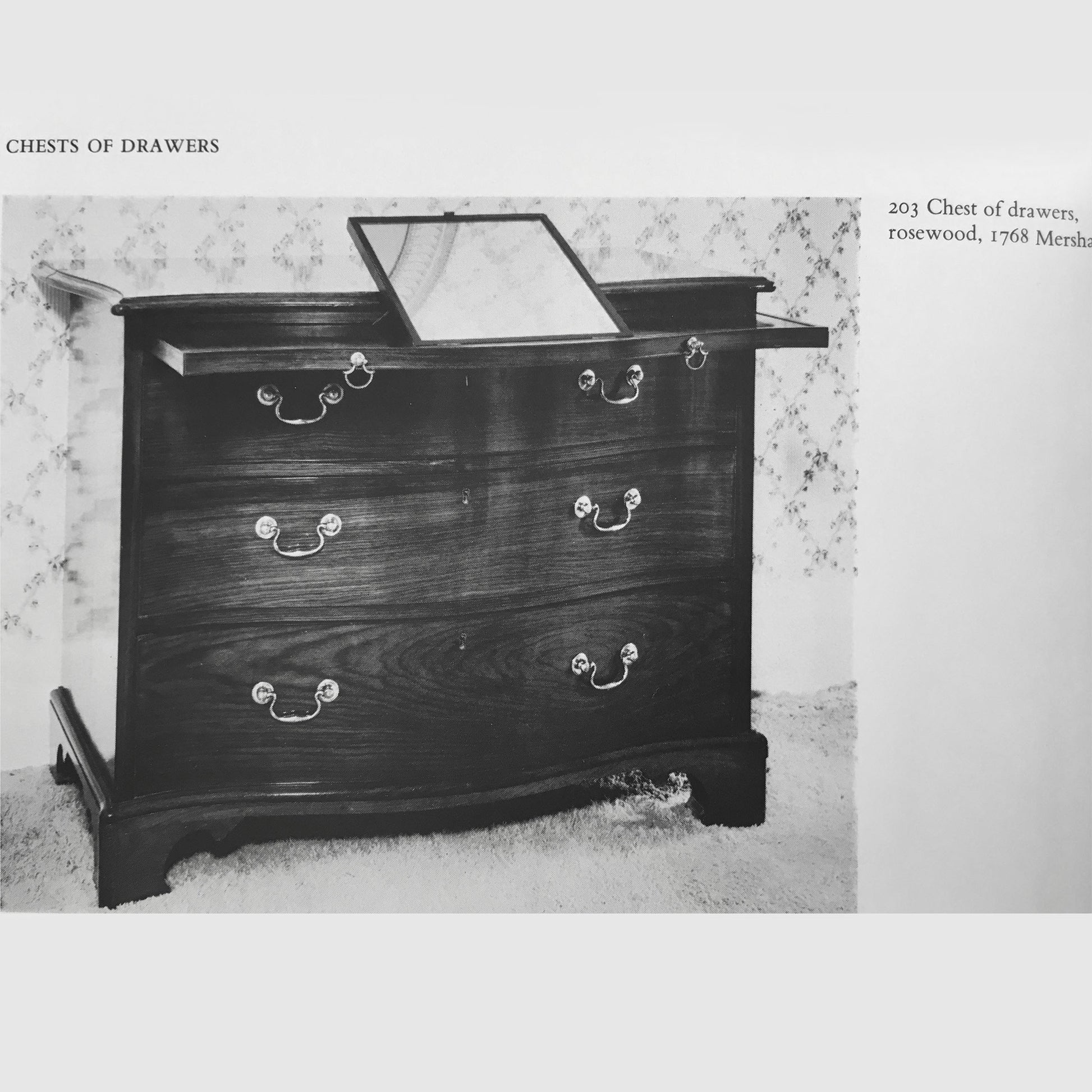 Other similar serpentine chests were supplied by Thomas Chippendale for Ninian Home at Paxton House, Scotland; Henry, 10th Earl of Pembroke at Wilton House, Wiltshire and Sir Edward Knatchbull at Mersham le Hatch, Kent (see C.Gilbert, The Life and Work of Thomas Chippendale, London, 1978, vol. II, figs. 203, 205 and 206).