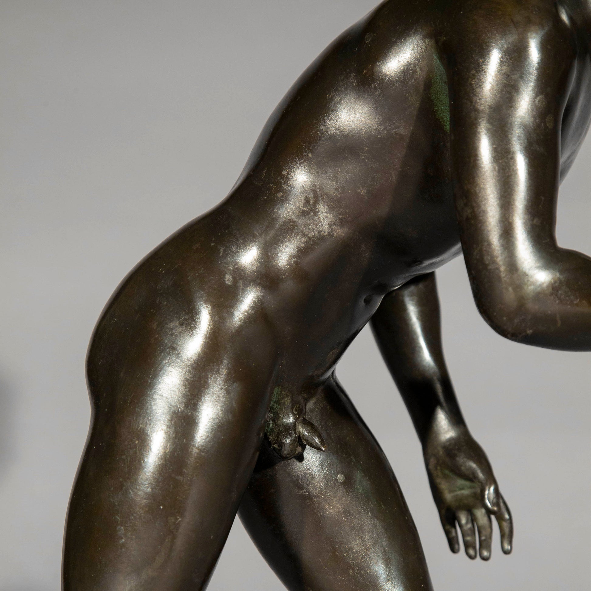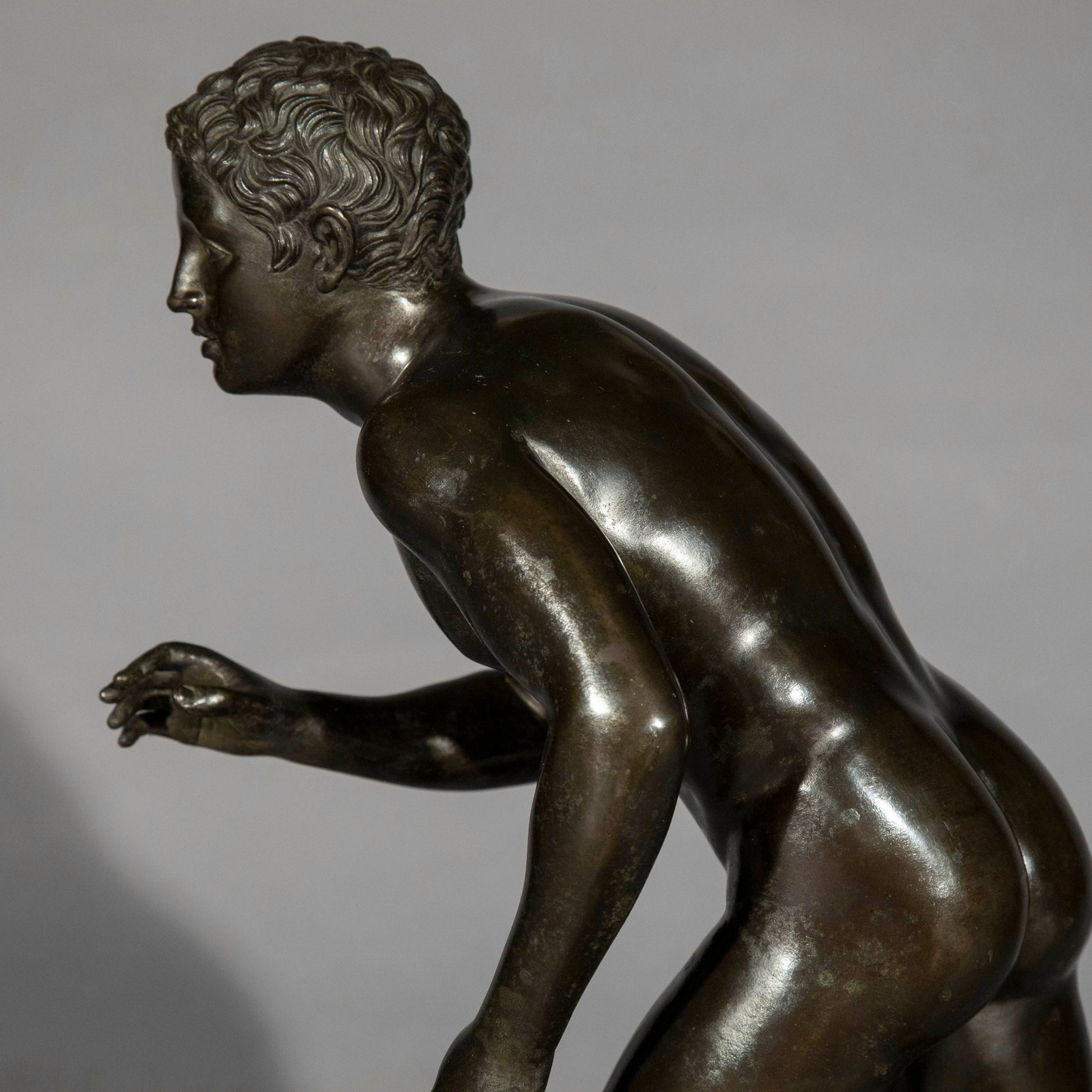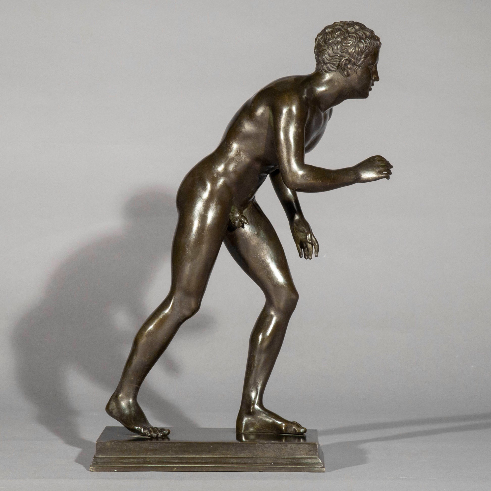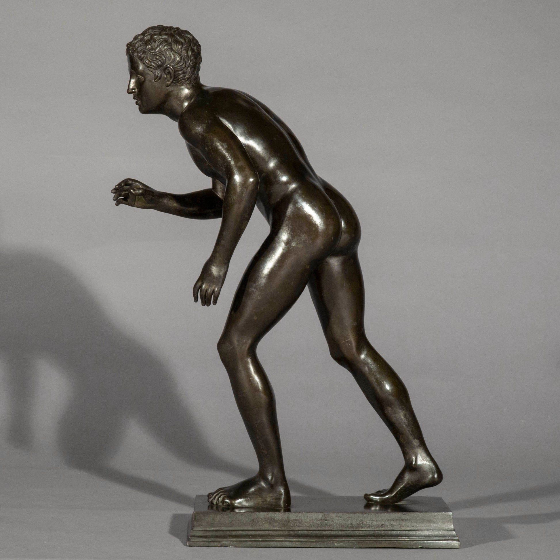 An exquisite 'Grand Tour' bronze figure of a young athlete, one of the two known as the 'Herculaneum Runners' or Corridori d'Ercolano, after the original excavated at the Villa of the Papyri in 1754