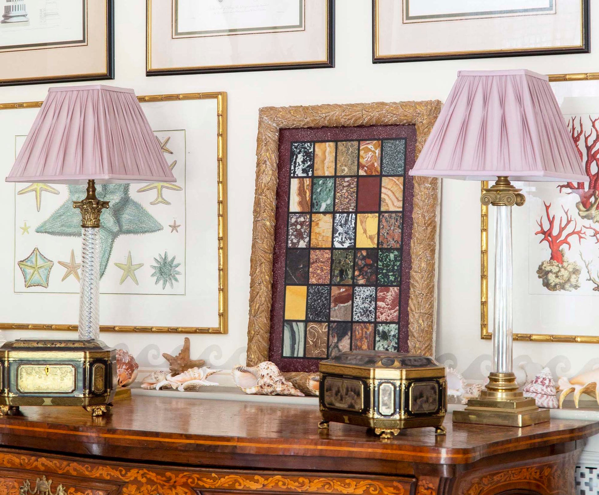 A superb quality Grand Tour-inspired brass and glass table lamp, fashioned as Ionic column.