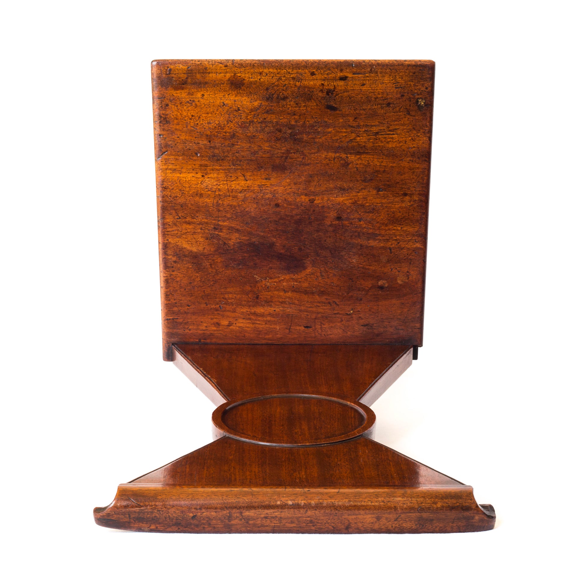Both chairs are stamped 'AD' to back seat rails, which most likely refers to the journeyman's initials; a pair of Regency armchairs bearing the same stamp was attributed to Gillows (Christies, 10 July 2003, London, Lot 83), similar stamps 'AI' and 'AP' appeared on dining chairs, supplied by Gillows to Hackwood House (Christies, 20-22 April 1998, Hackwood House, Lot 158). However, Sotheby’s attributed four nearly identical chairs (Sotheby's, New York, October 16, 2009, Lot 80) to James Newton, 63 Wardour Street, London, based on the fact that the backs share close similarity to the trestle support of a mahogany sofa table bearing the cabinetmaker’s label.