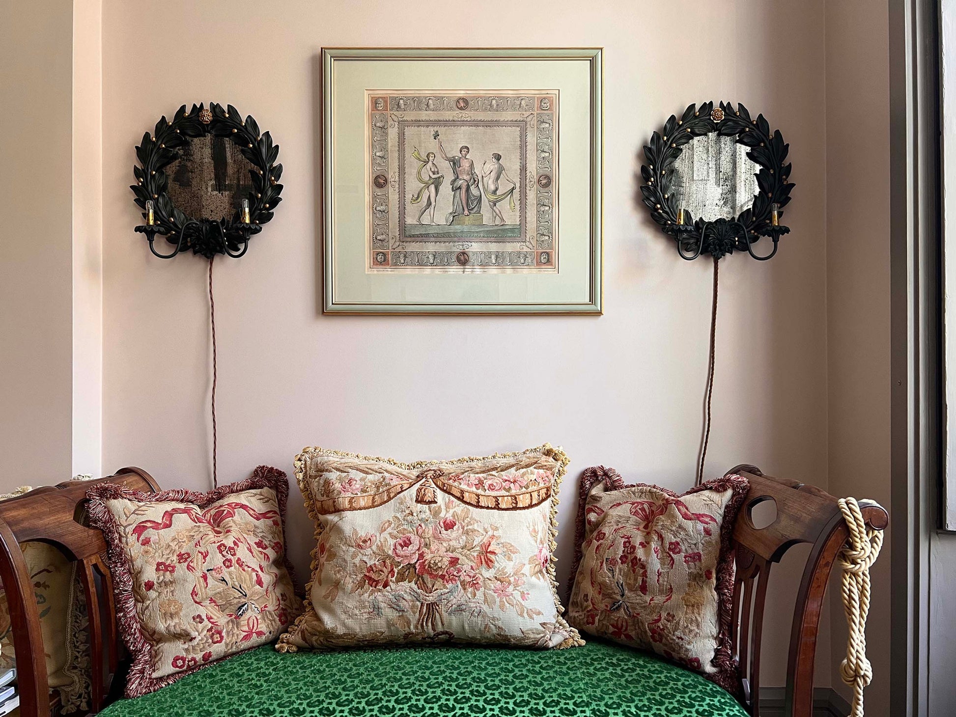 A very decorative down-filled scatter cushion made of an Aubusson tapestry fragment of floral design, with modern silk backing and a tassel fringe trim.