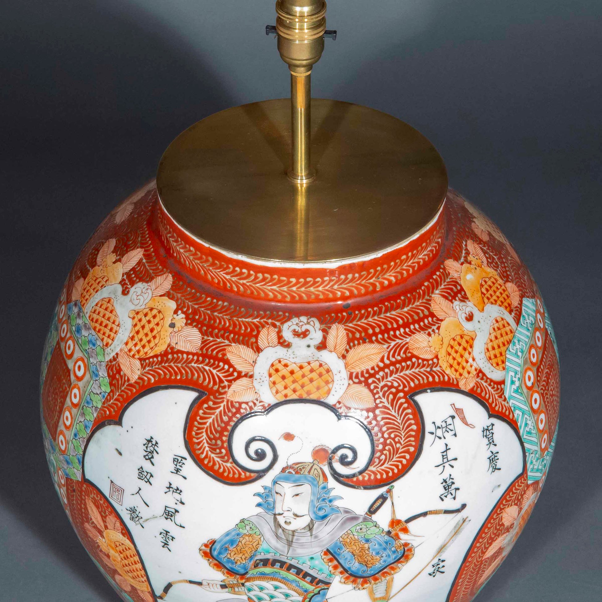 A stunning Chinese iron-red 'temple jar' table lamp of monumental proportions.
