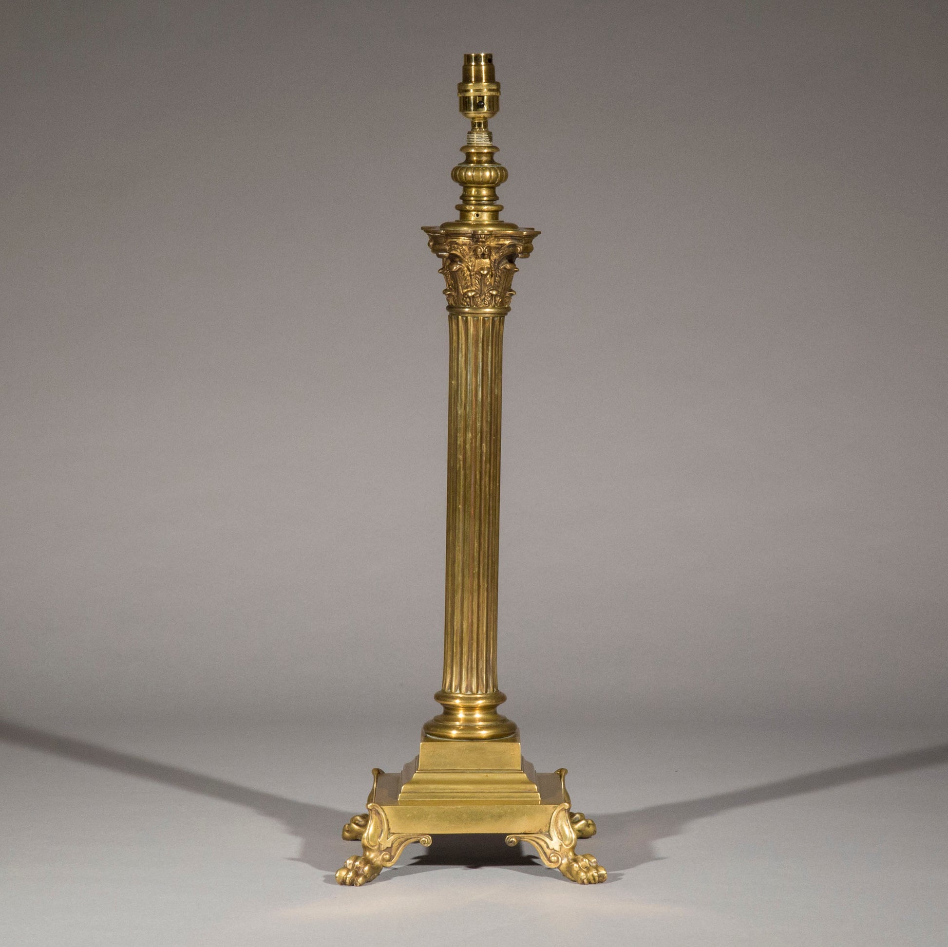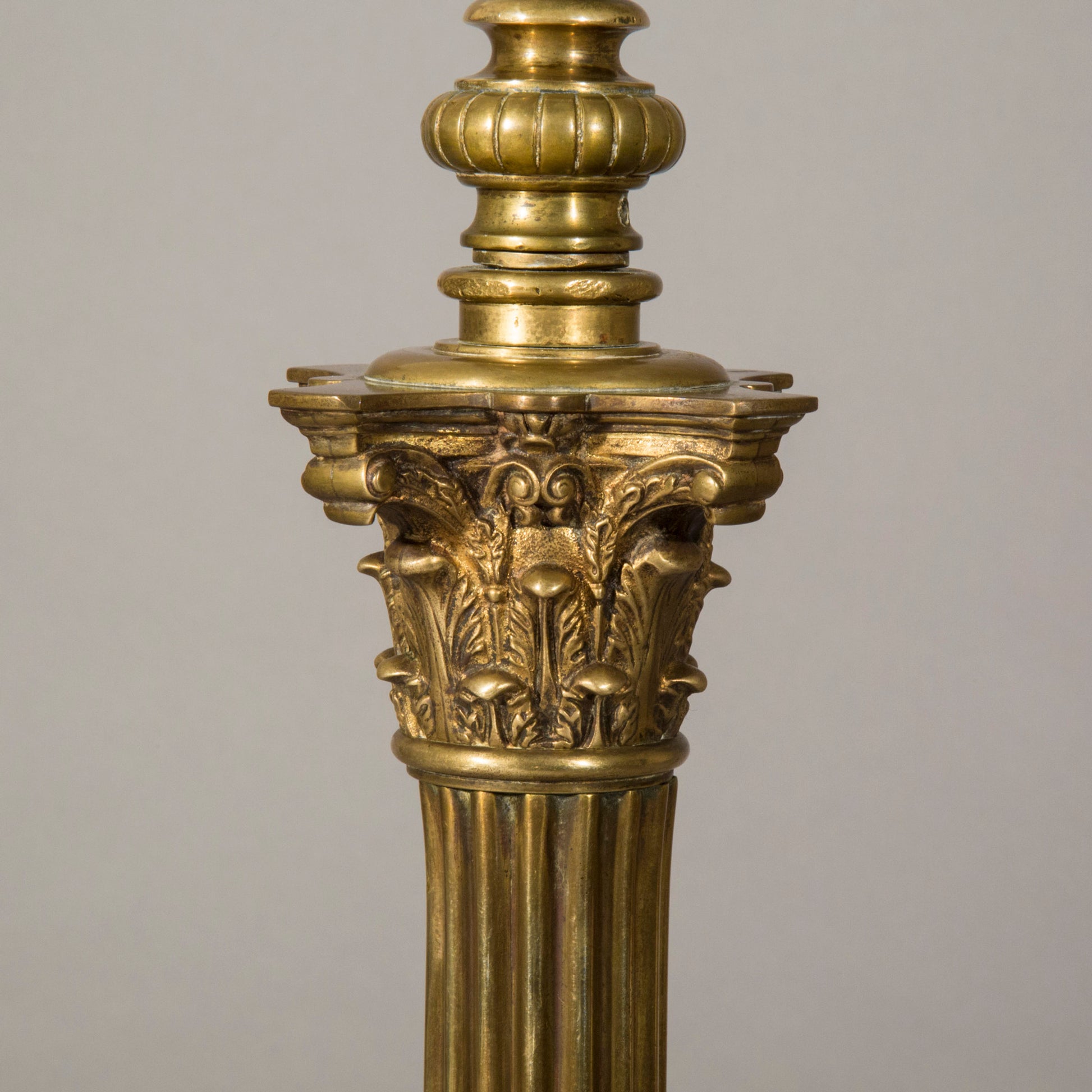 A superb quality patinated brass table lamp, of Corinthian column design and unusually large proportions