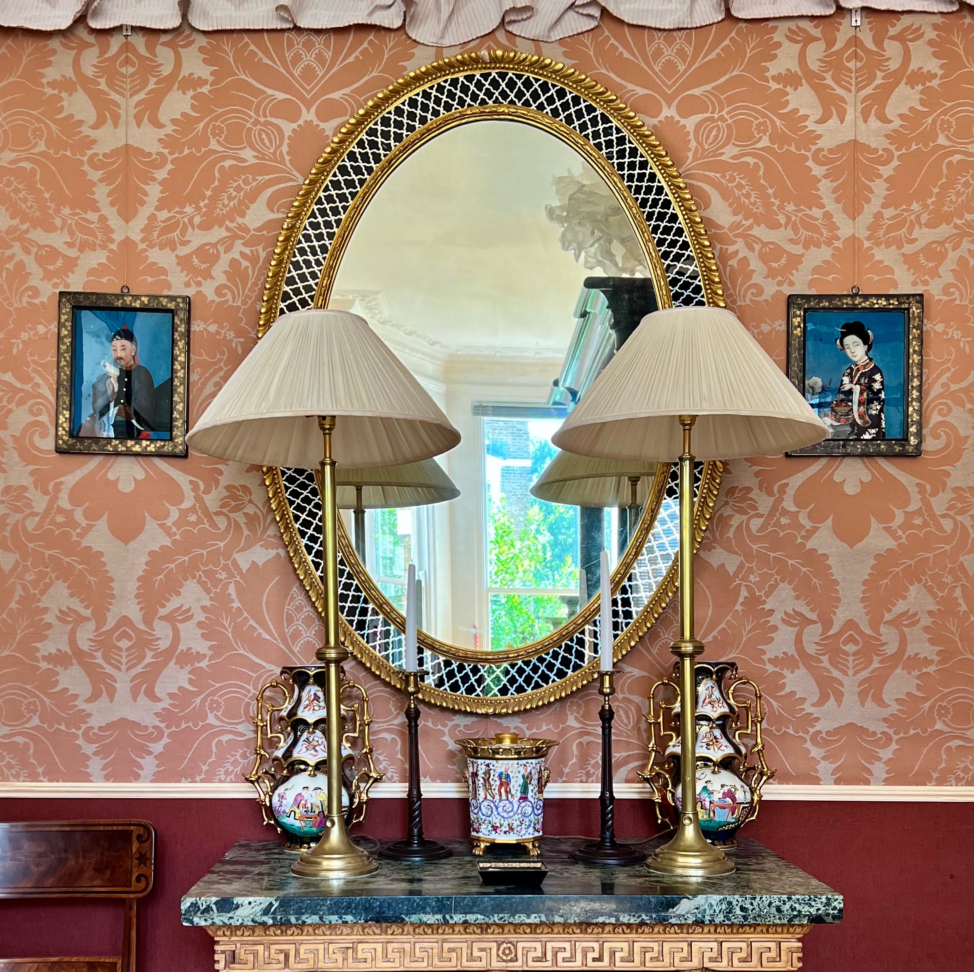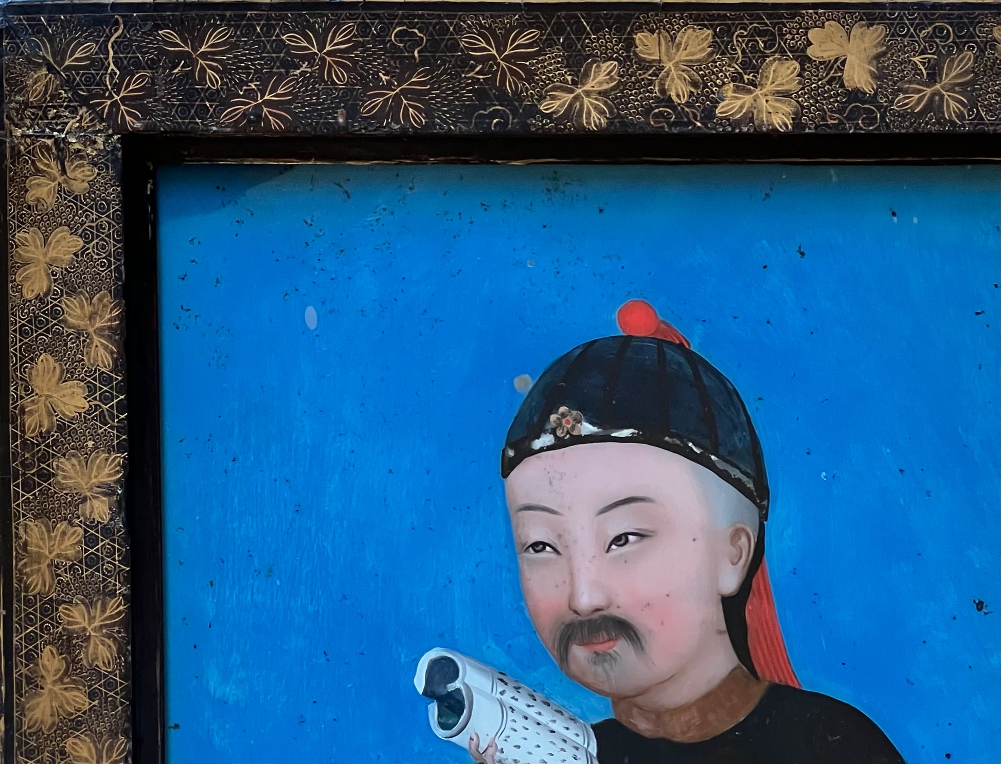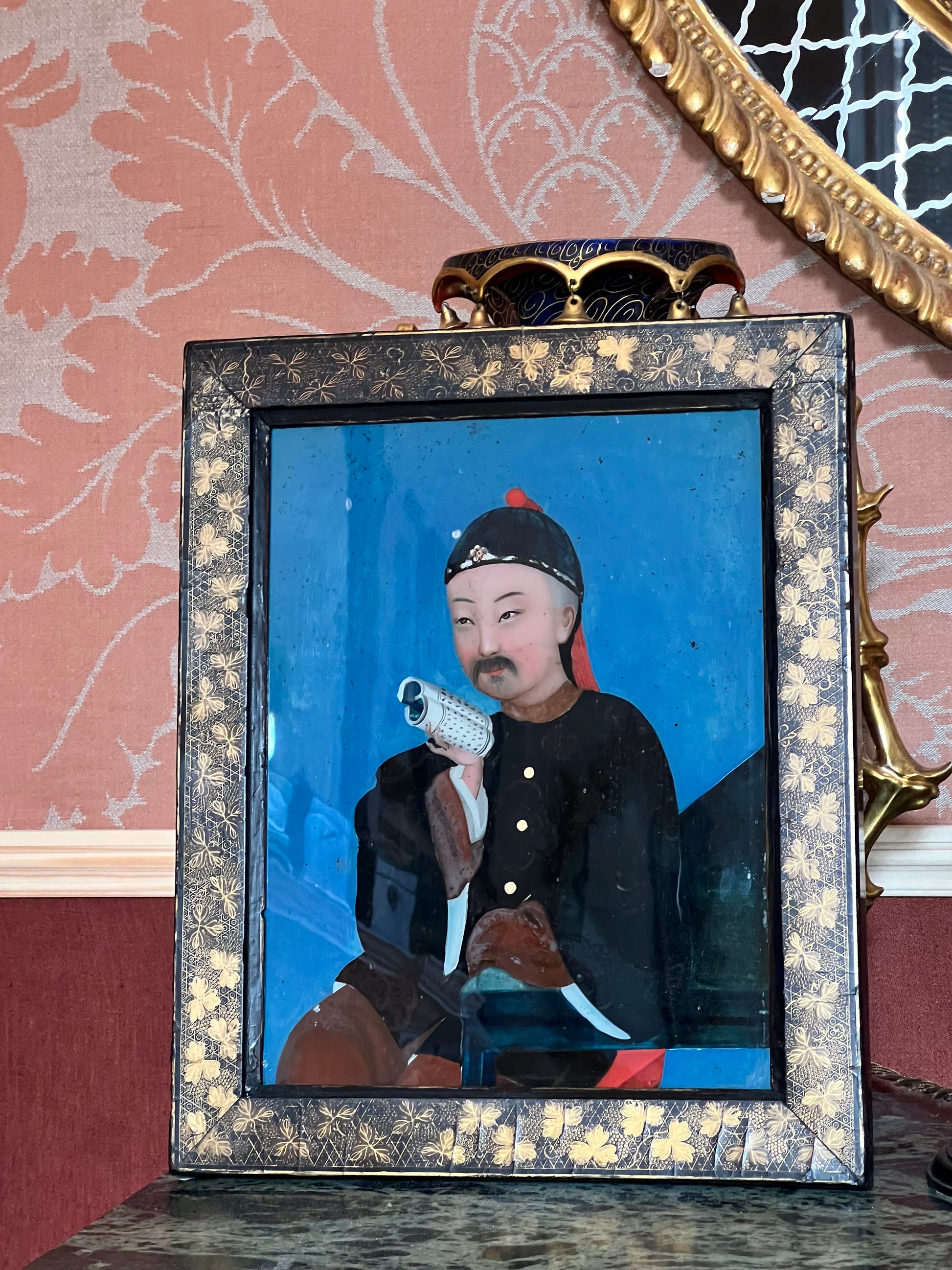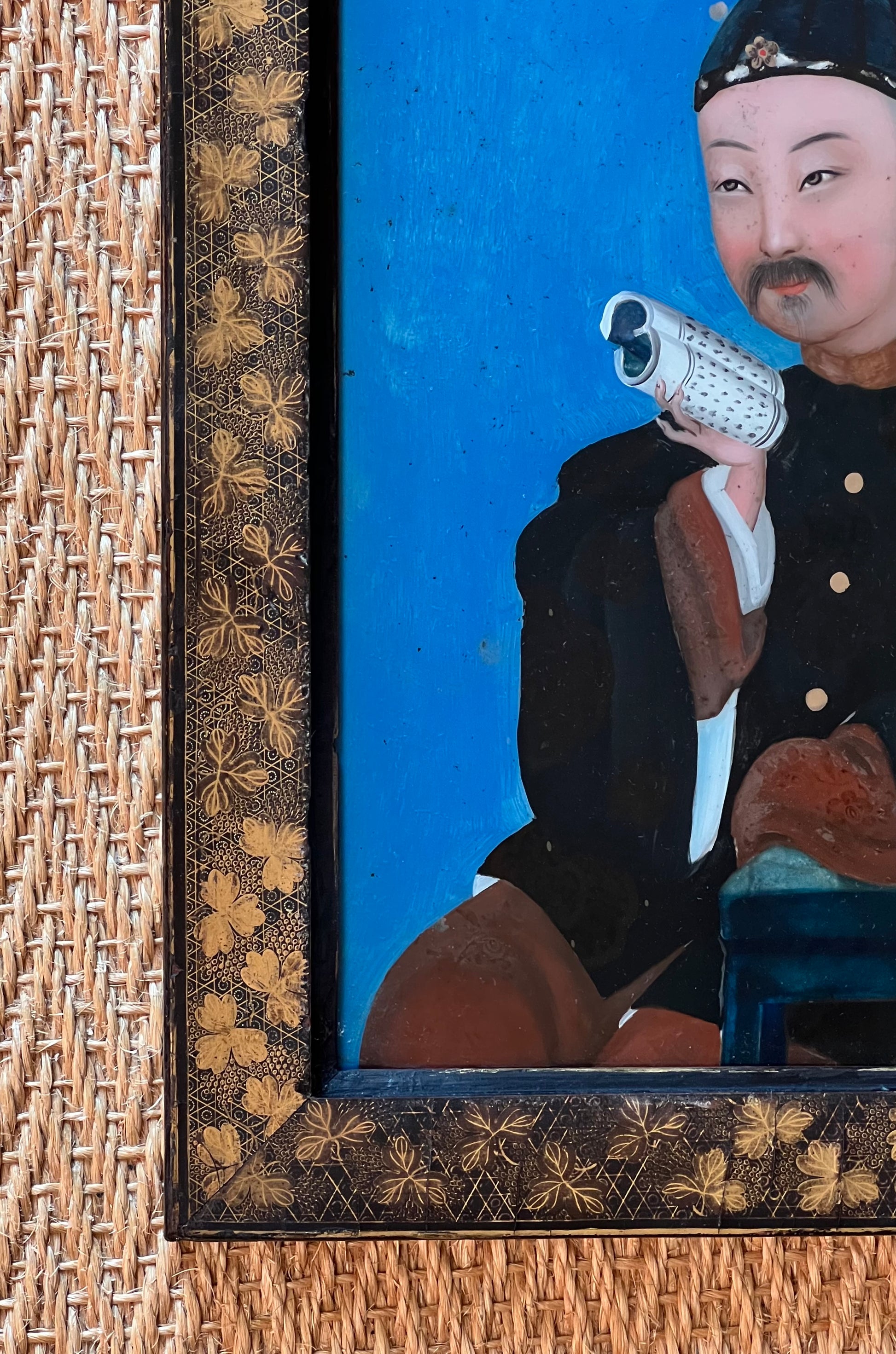 A pair of absolutely exquisite 18th century Chinese export reverse glass portrait paintings in 18th century lacquer frames. Canton, circa 1800.