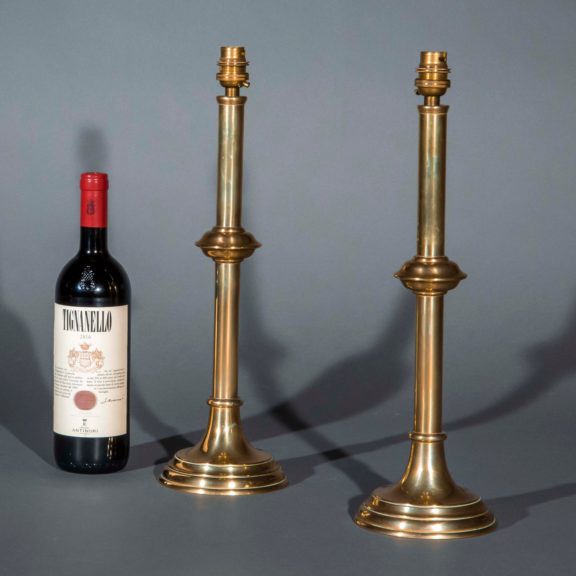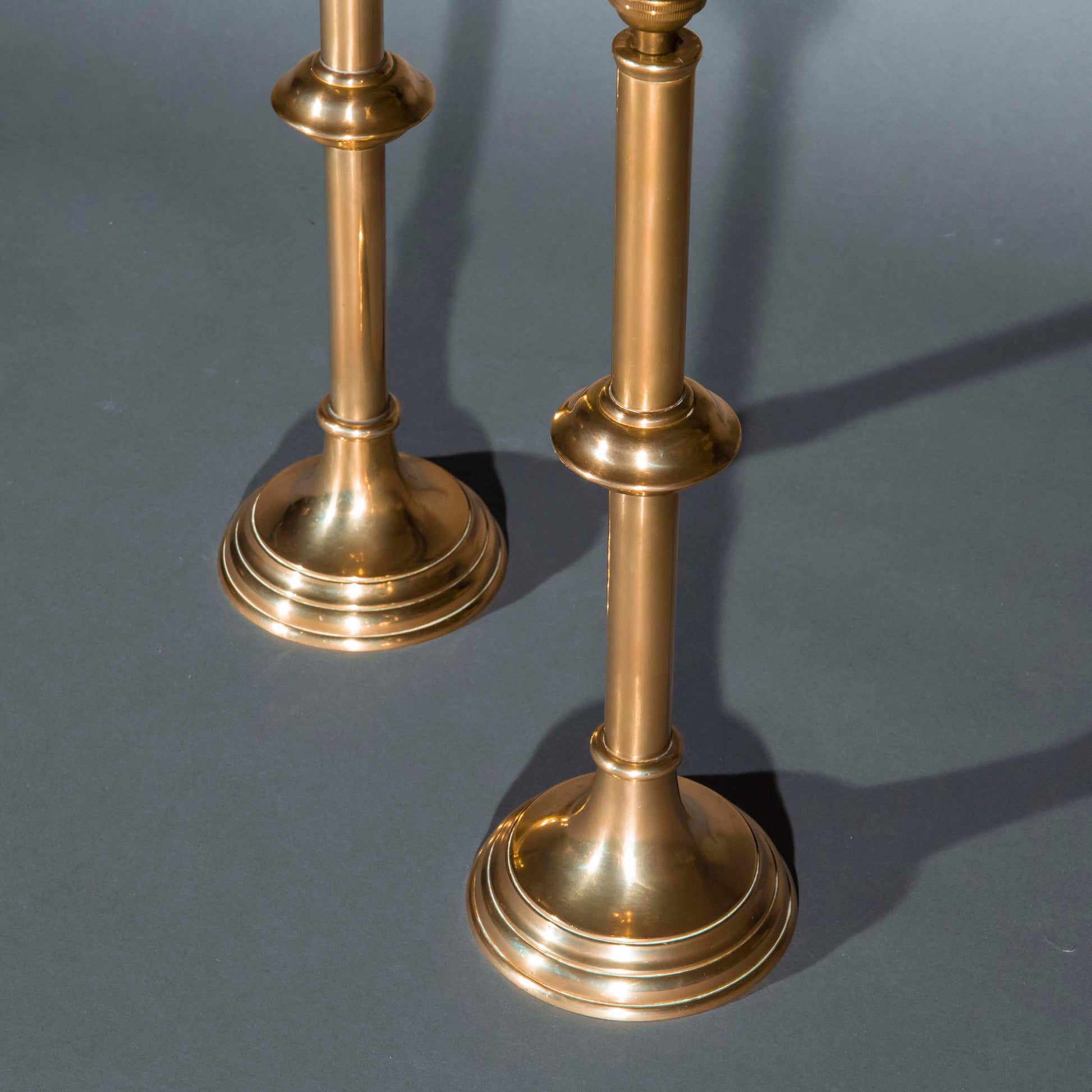 This wonderfully chic pair of lamps is simple and sophisticated at the same time. Their sleek stems with a 'kink' in the middle evoke 1950's retrofuturism and spaceship motifs, rather than Victorian candlesticks, that they really were. Understated yet superbly decorative, equally suitable for contemporary and eclectic interiors.