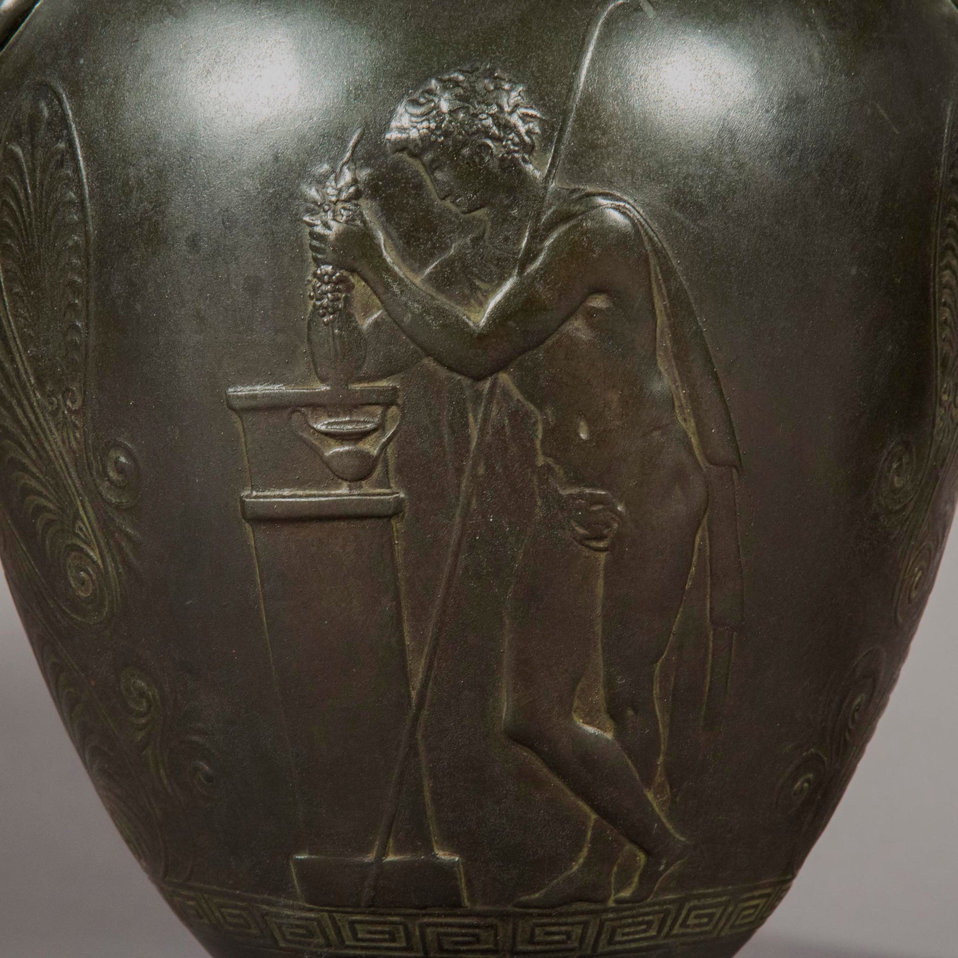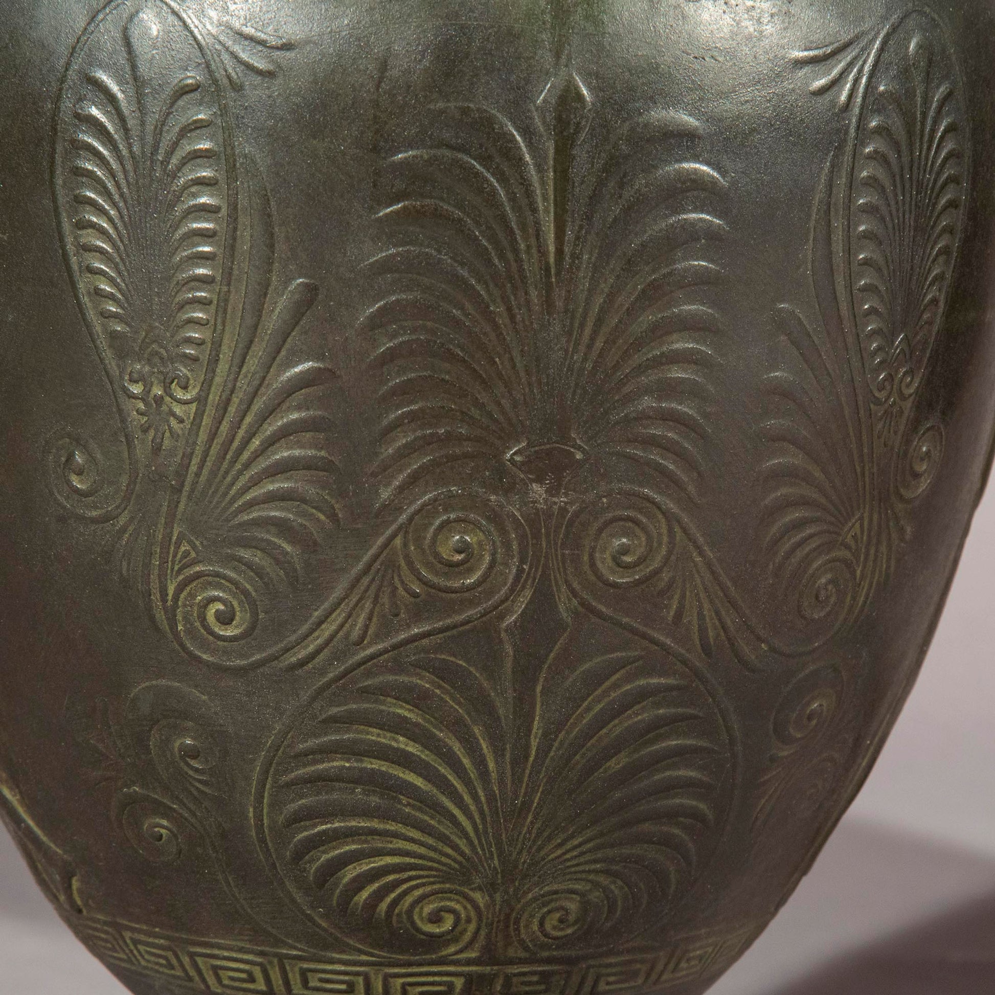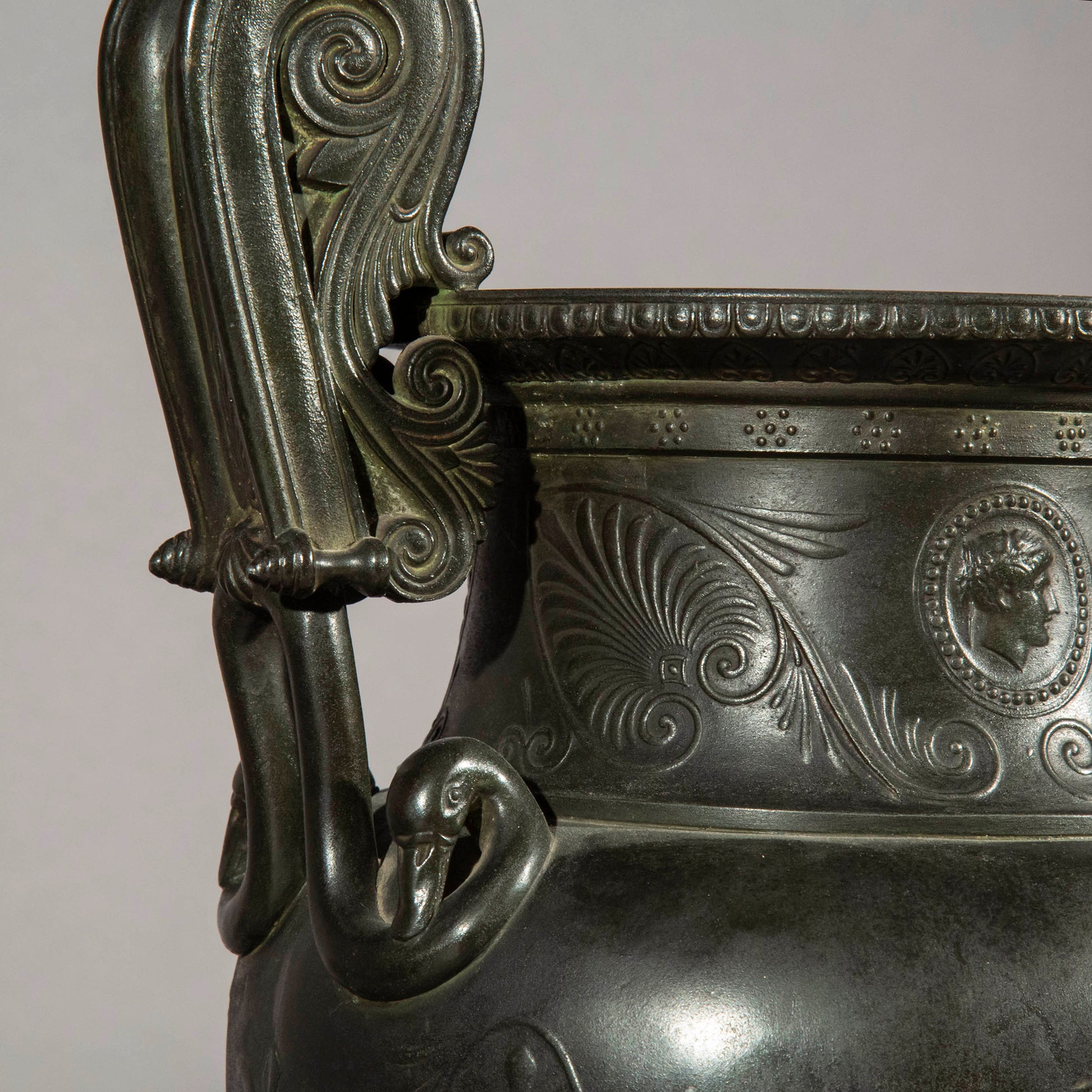 An unusually large and decorative pair of Grand Tour bronze vases of ancient Greek volute krater form,