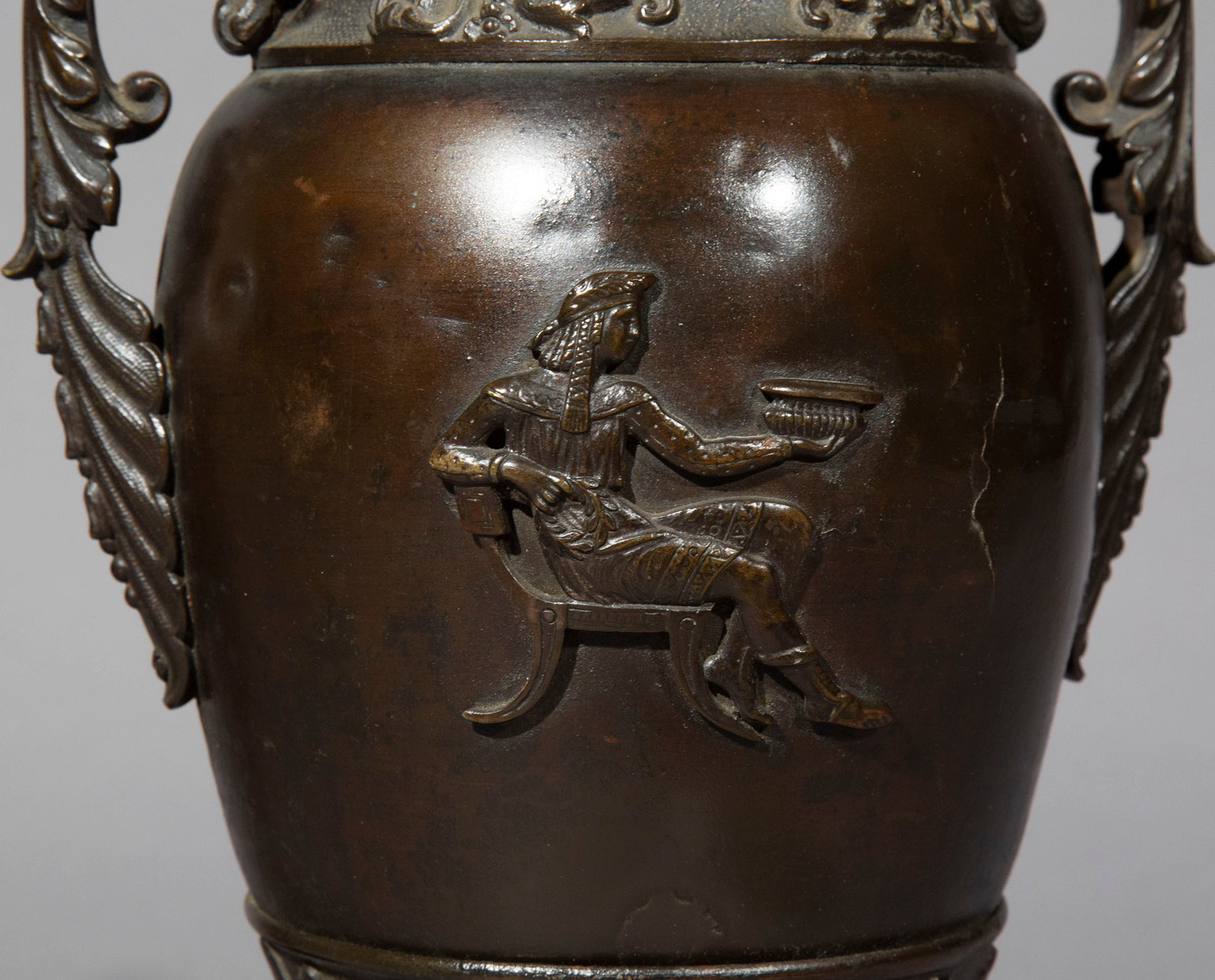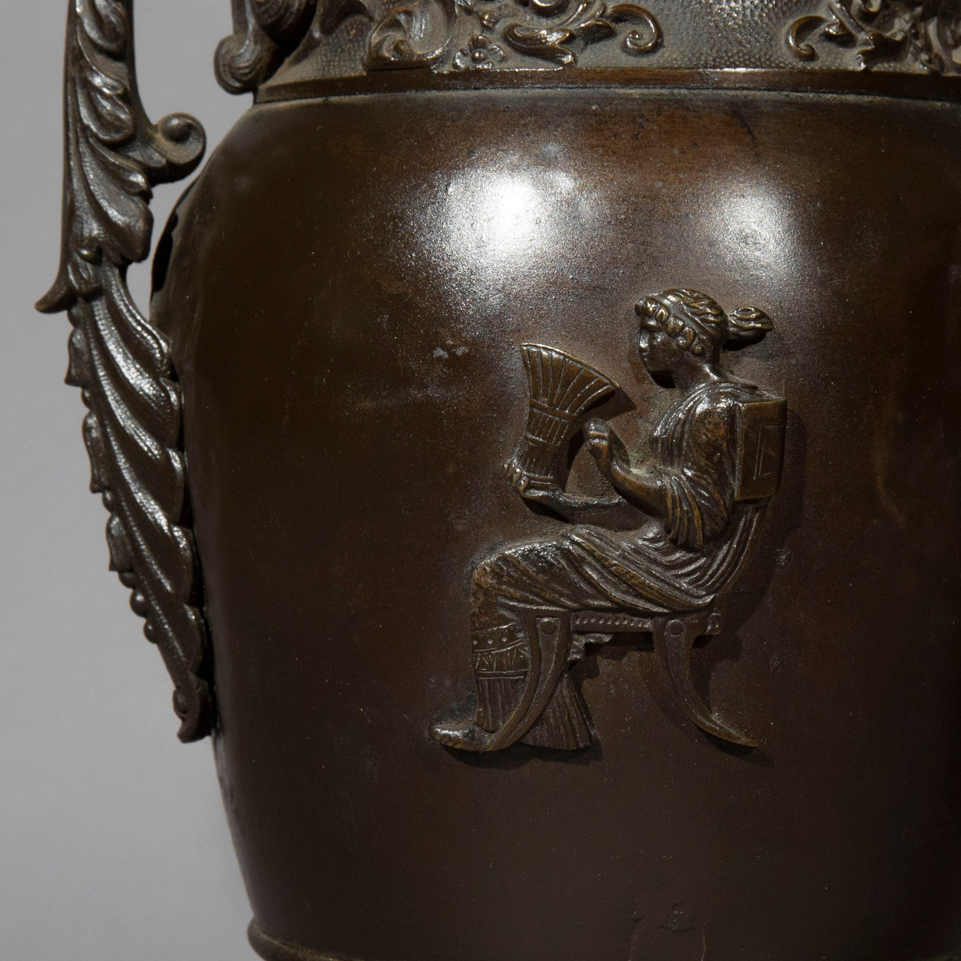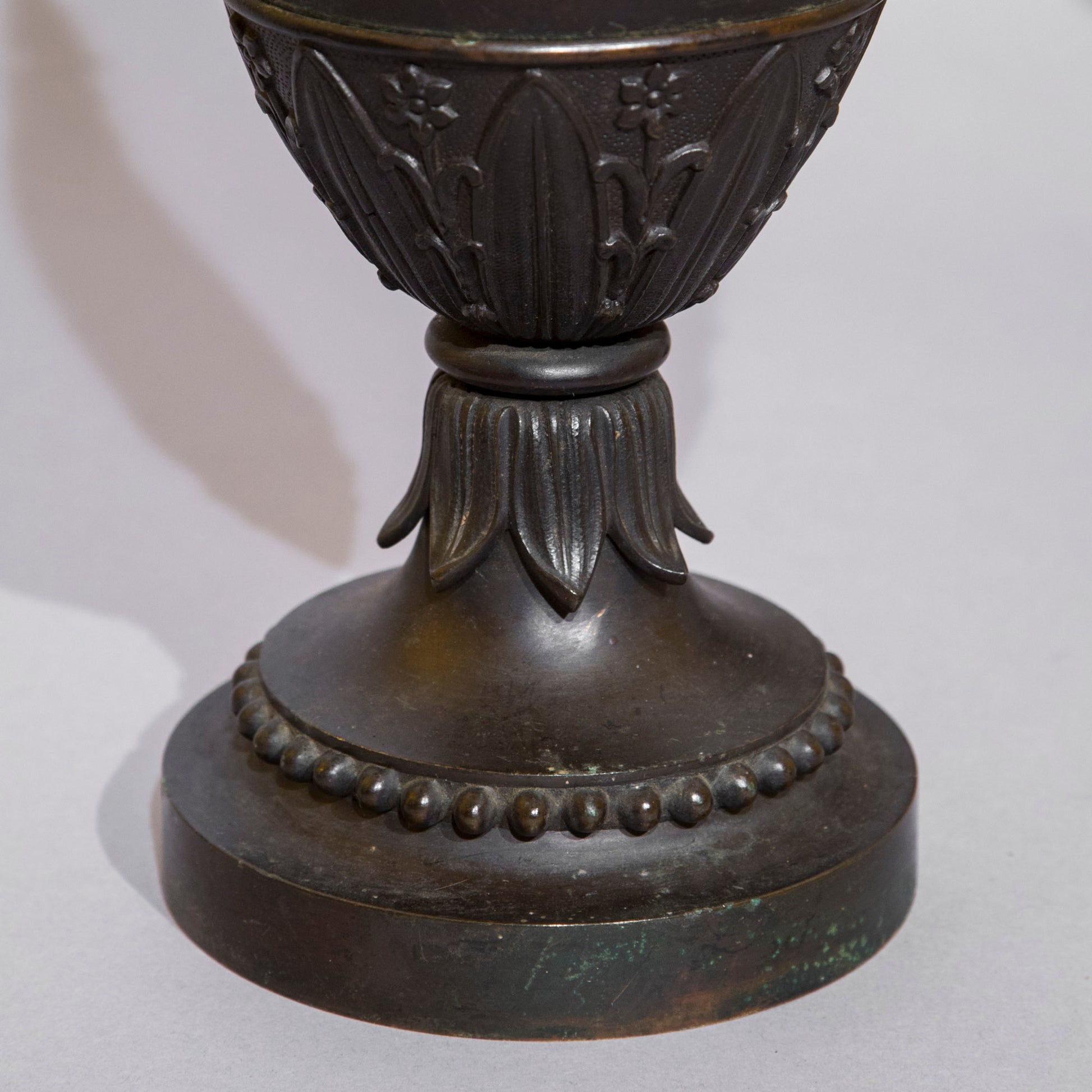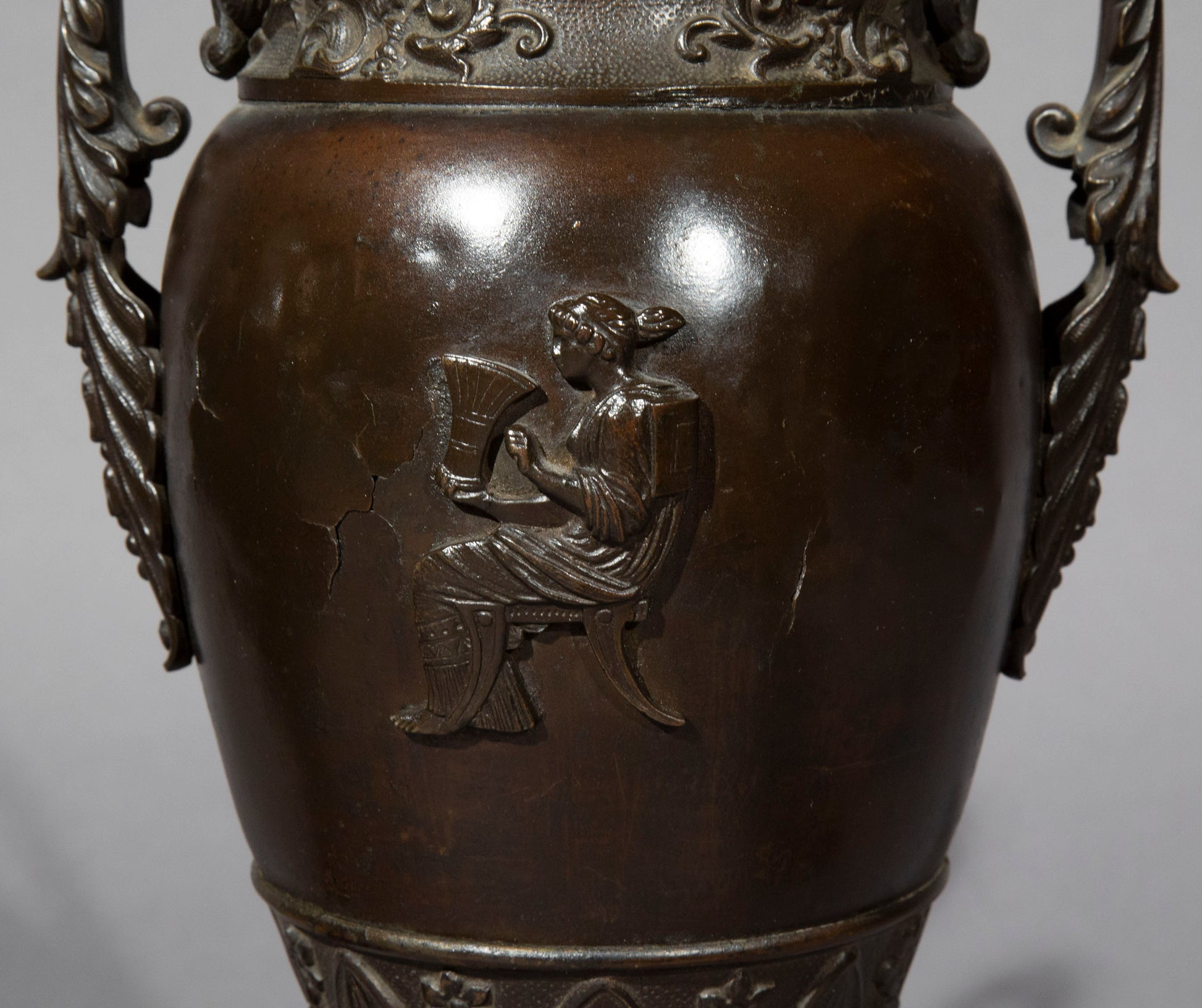 A very decorative pair of antique bronze urns mounted as table lamps,