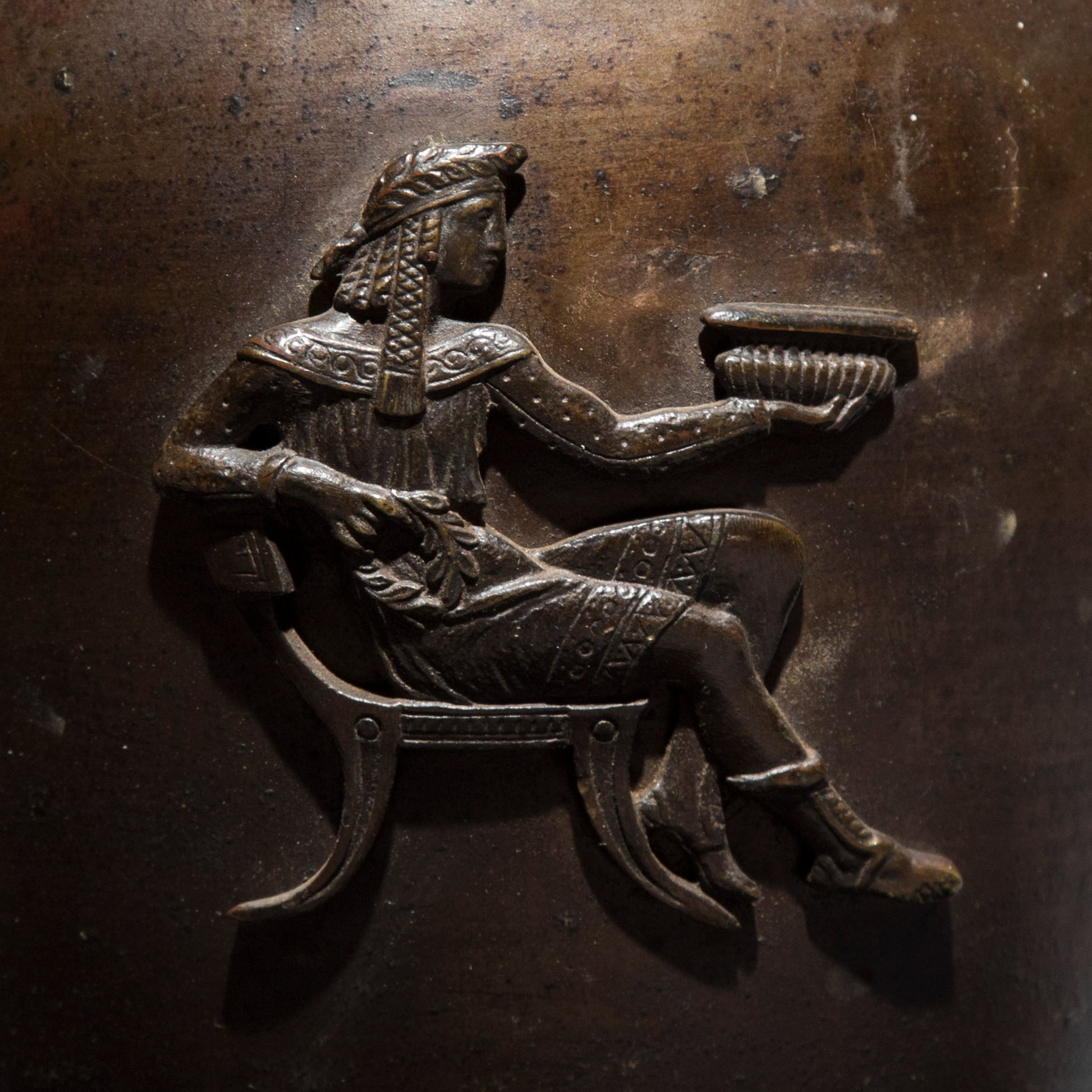 The crater, a large vase originally used to mix water and wine, here has a purely decorative function. With their sides decorated with reliefs of figures sitting on klismoï, these vases illustrate the taste of the great European collectors, culminated in the construction of the Villa Kérylos in Beaulieu-sur-Mer, Côte d'Azur, in 1908.