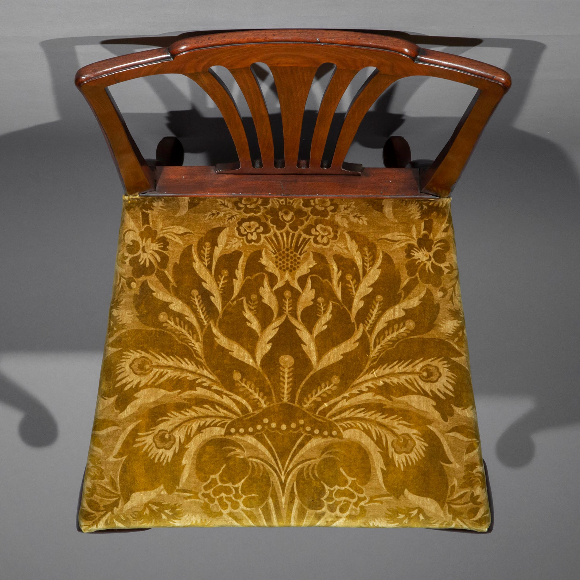 The present chairs can be attributed to the Clerkenwell Cabinet maker Giles Grendey (d.1780) whose label appears on a closely related set of twelve chairs formerly with Christopher Gibbs Ltd and illustrated in C.Gilbert, The Pictorial Dictionary of Marked London Furniture 1700-1840, Leeds 1996, p.242, fig.435.