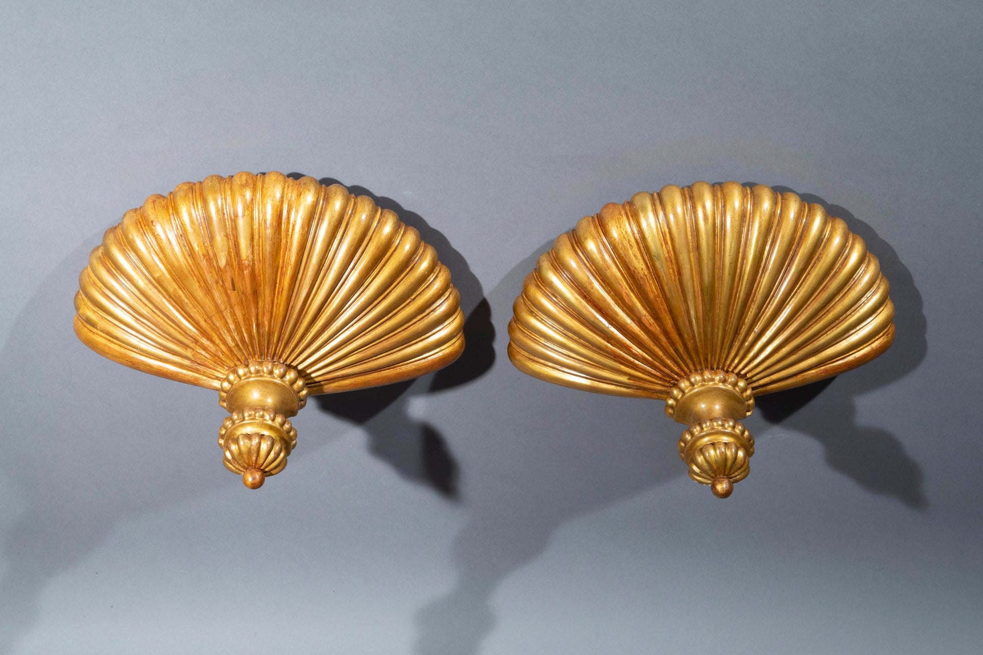 A fine pair of carved giltwood wall brackets in the regency taste,