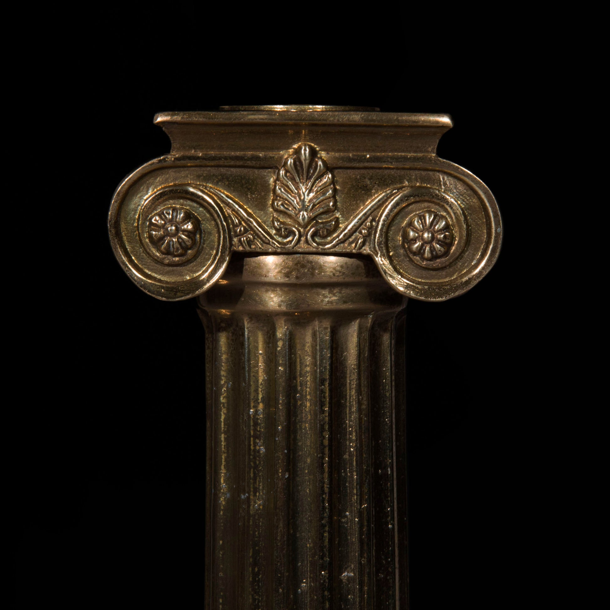An impressive pair of Grand Tour gilded metal lamps, fashioned as Ionic columns.